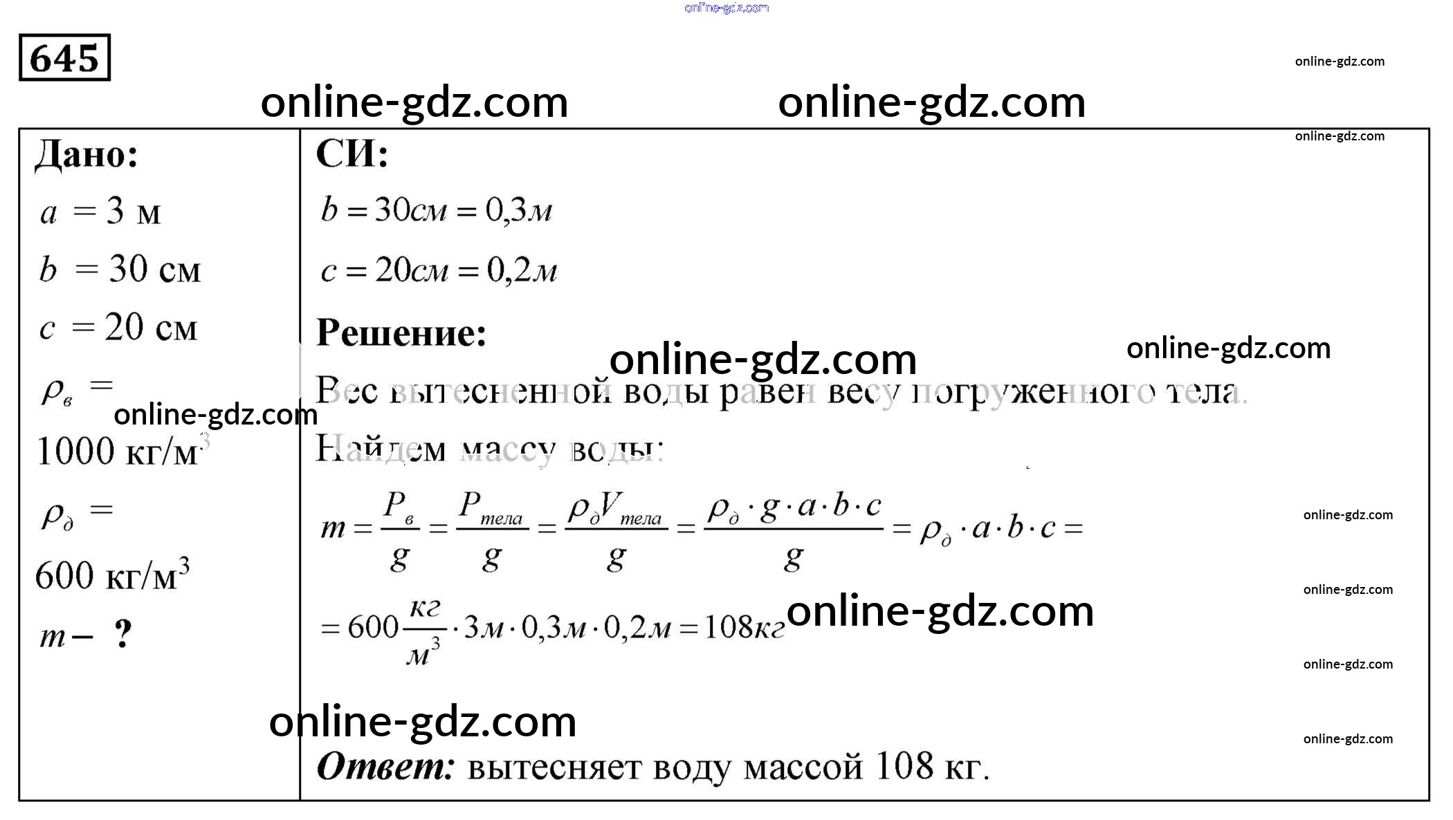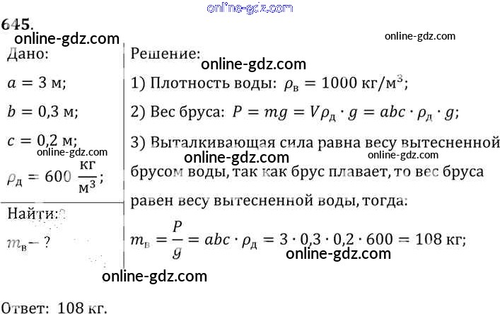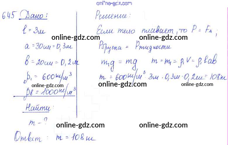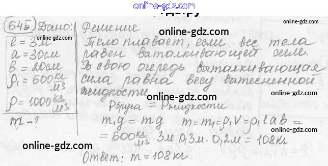 Готовые домашние задания по Физике за 7, 8, 9 класс Сборник задач Лукашик, Иванова 2011 - Задания 645