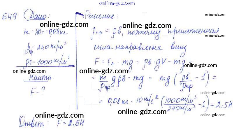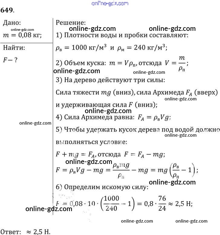 Готовые домашние задания по Физике за 7, 8, 9 класс Сборник задач Лукашик, Иванова 2011 - Задания 649