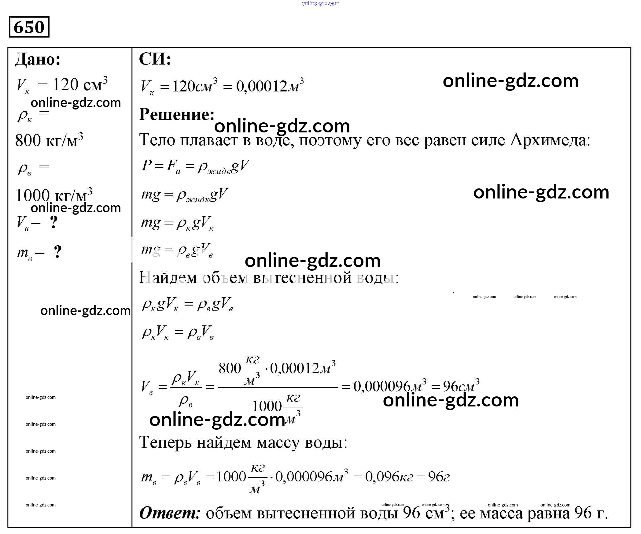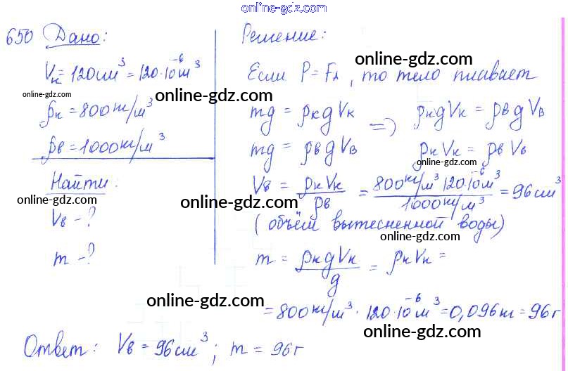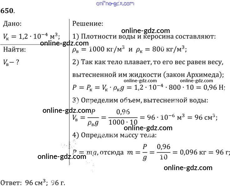 Готовые домашние задания по Физике за 7, 8, 9 класс Сборник задач Лукашик, Иванова 2011 - Задания 650