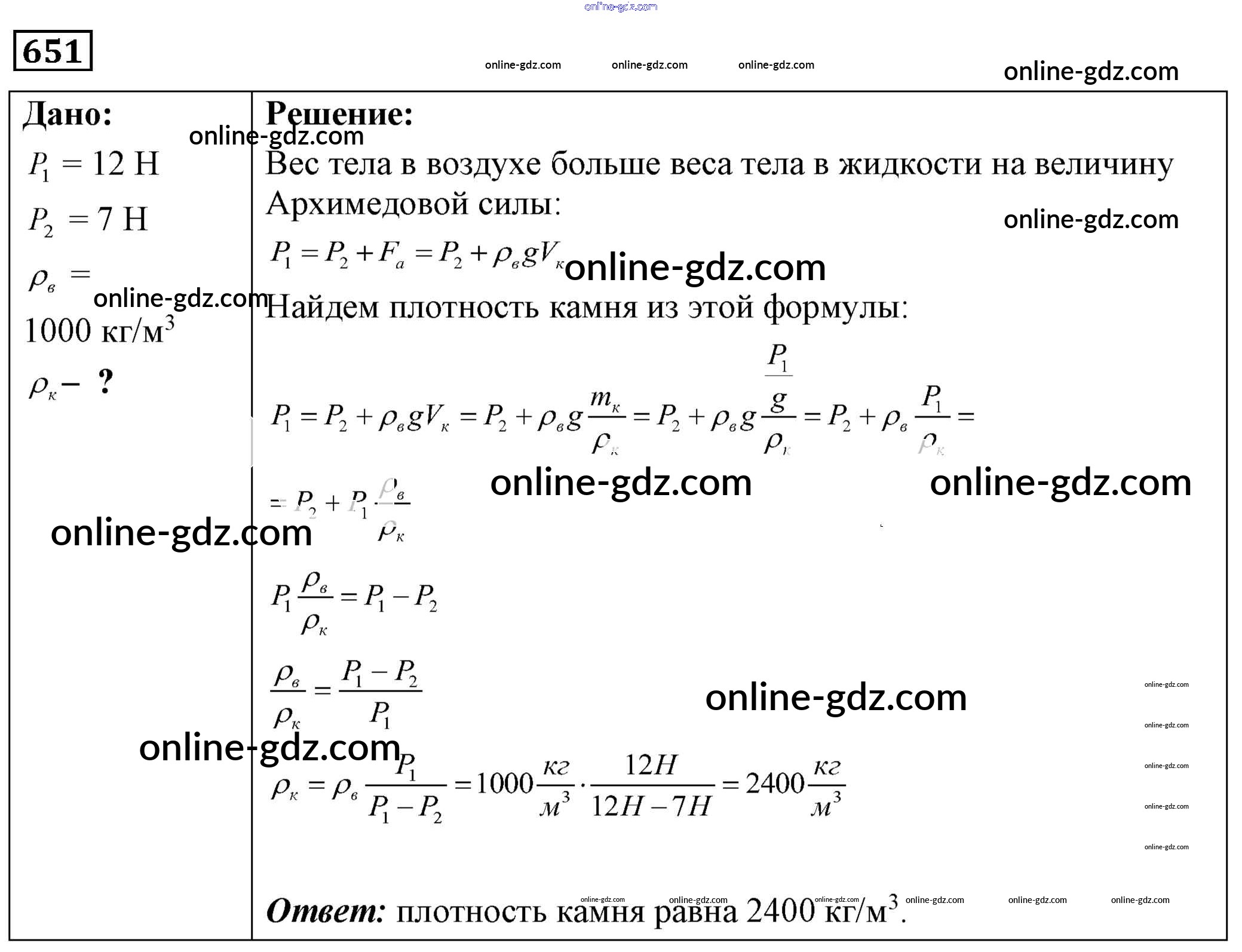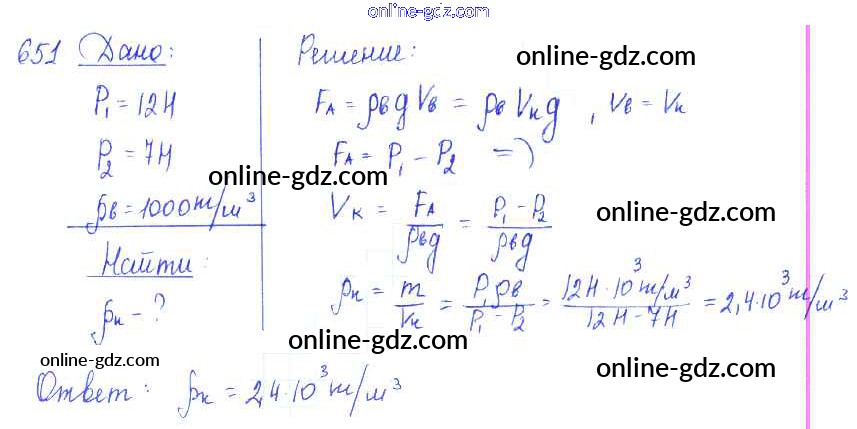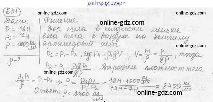 Готовые домашние задания по Физике за 7, 8, 9 класс Сборник задач Лукашик, Иванова 2011 - Задания 651