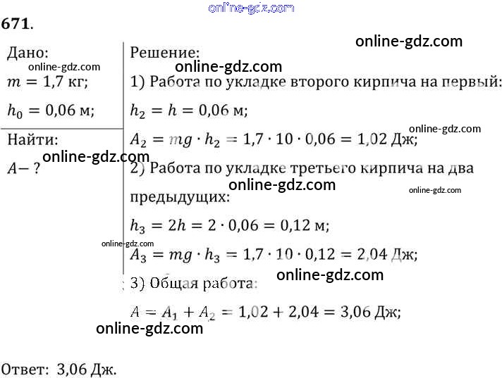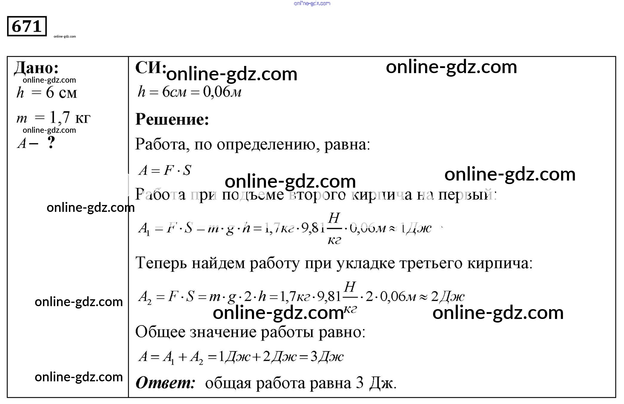 Готовые домашние задания по Физике за 7, 8, 9 класс Сборник задач Лукашик, Иванова 2011 - Задания 671