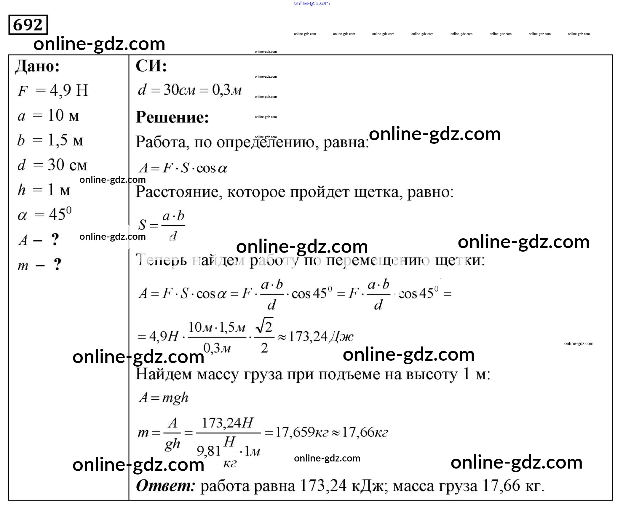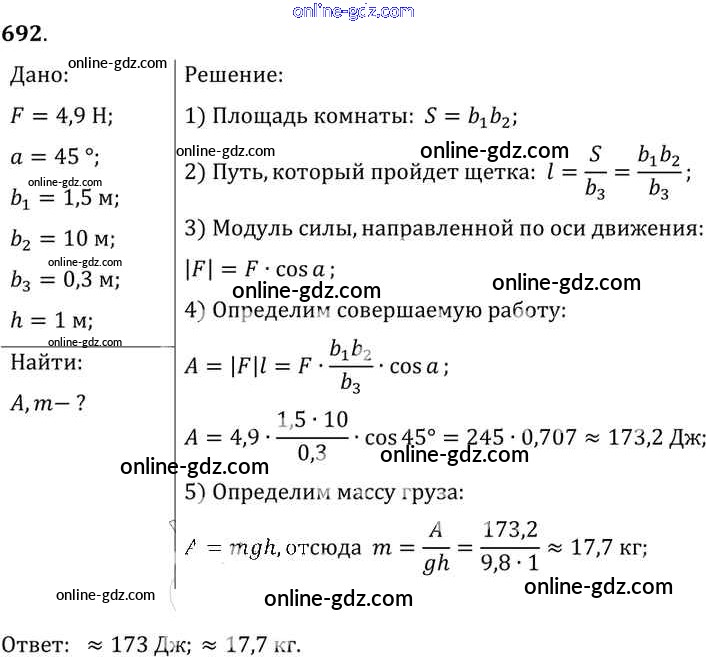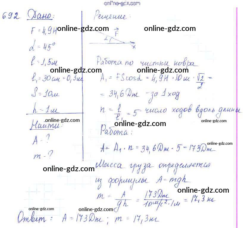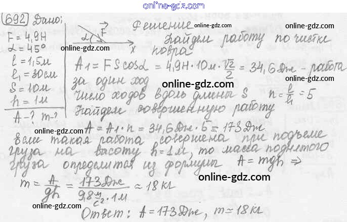 Готовые домашние задания по Физике за 7, 8, 9 класс Сборник задач Лукашик, Иванова 2011 - Задания 692