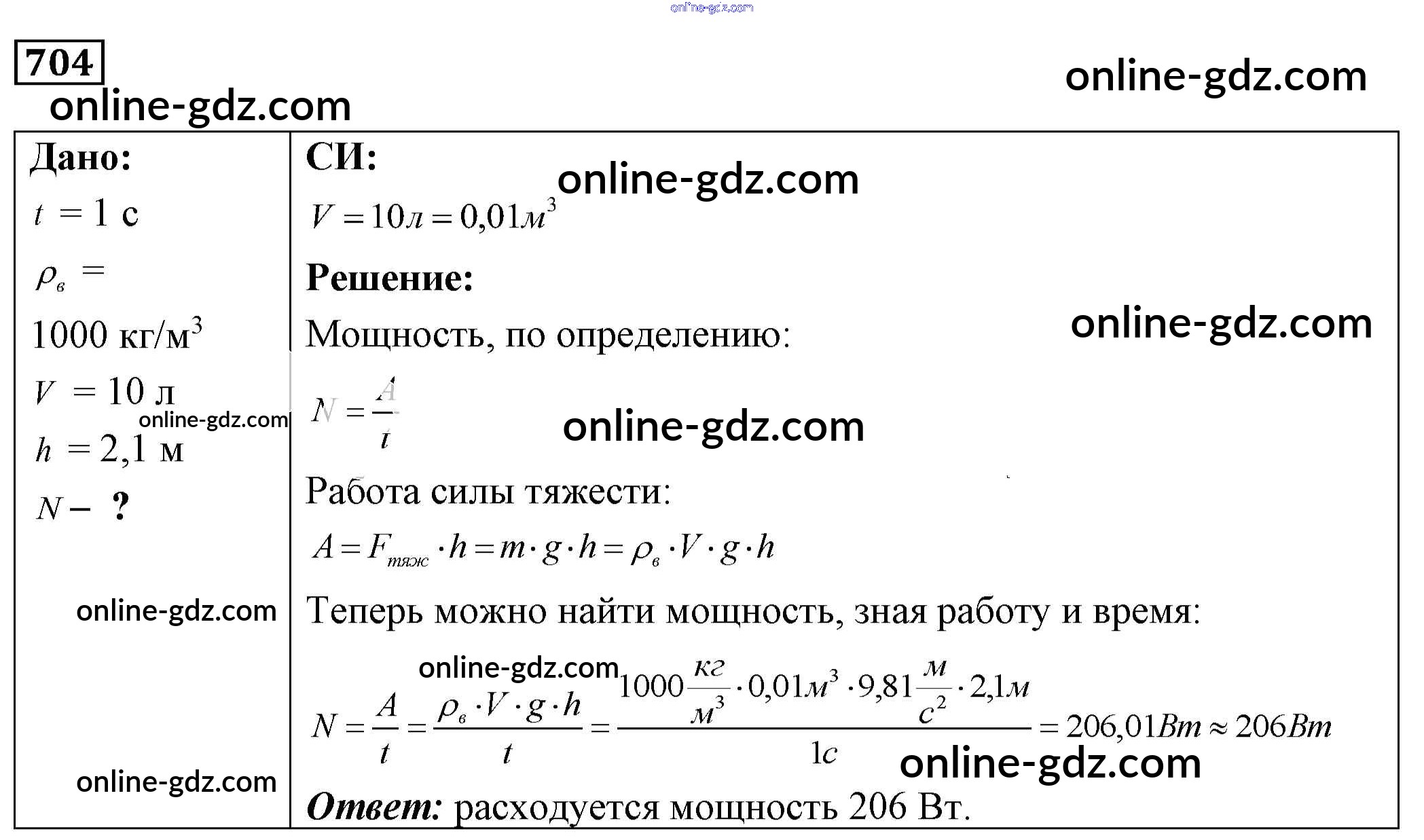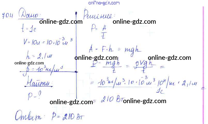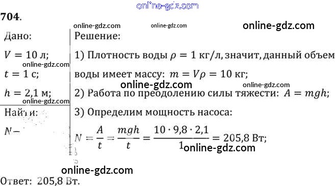 Готовые домашние задания по Физике за 7, 8, 9 класс Сборник задач Лукашик, Иванова 2011 - Задания 704