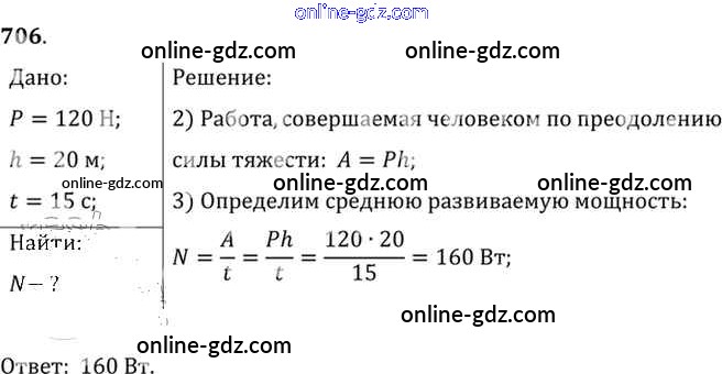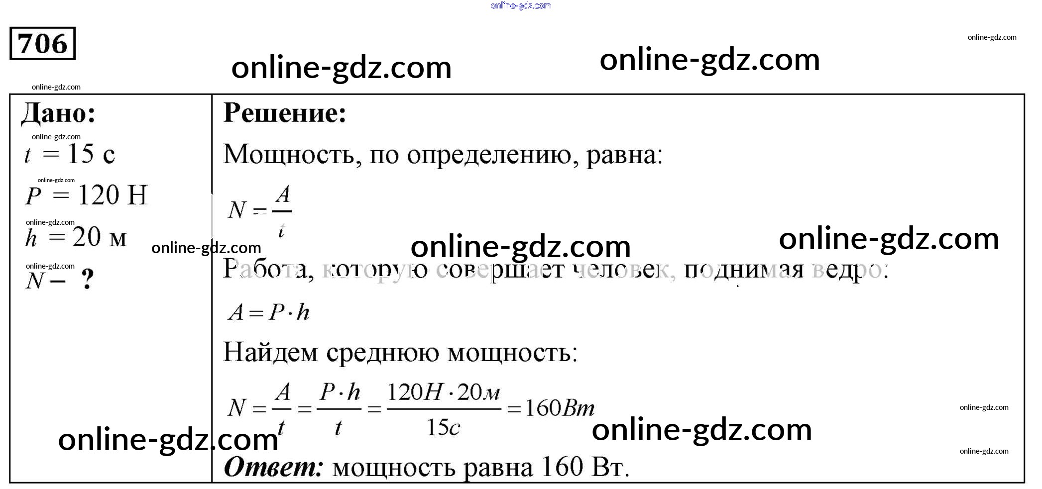 Готовые домашние задания по Физике за 7, 8, 9 класс Сборник задач Лукашик, Иванова 2011 - Задания 706