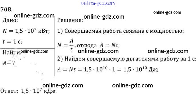 Готовые домашние задания по Физике за 7, 8, 9 класс Сборник задач Лукашик, Иванова 2011 - Задания 708