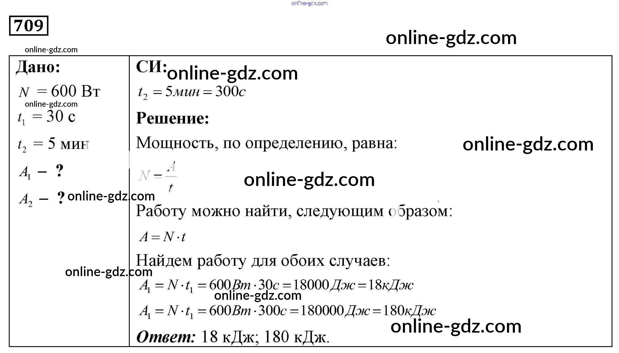 Готовые домашние задания по Физике за 7, 8, 9 класс Сборник задач Лукашик, Иванова 2011 - Задания 709