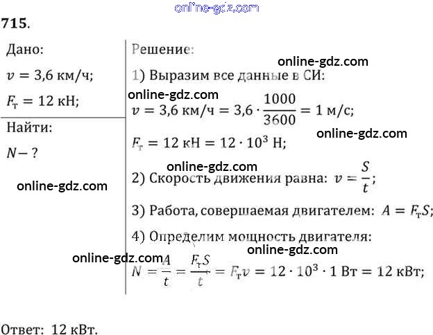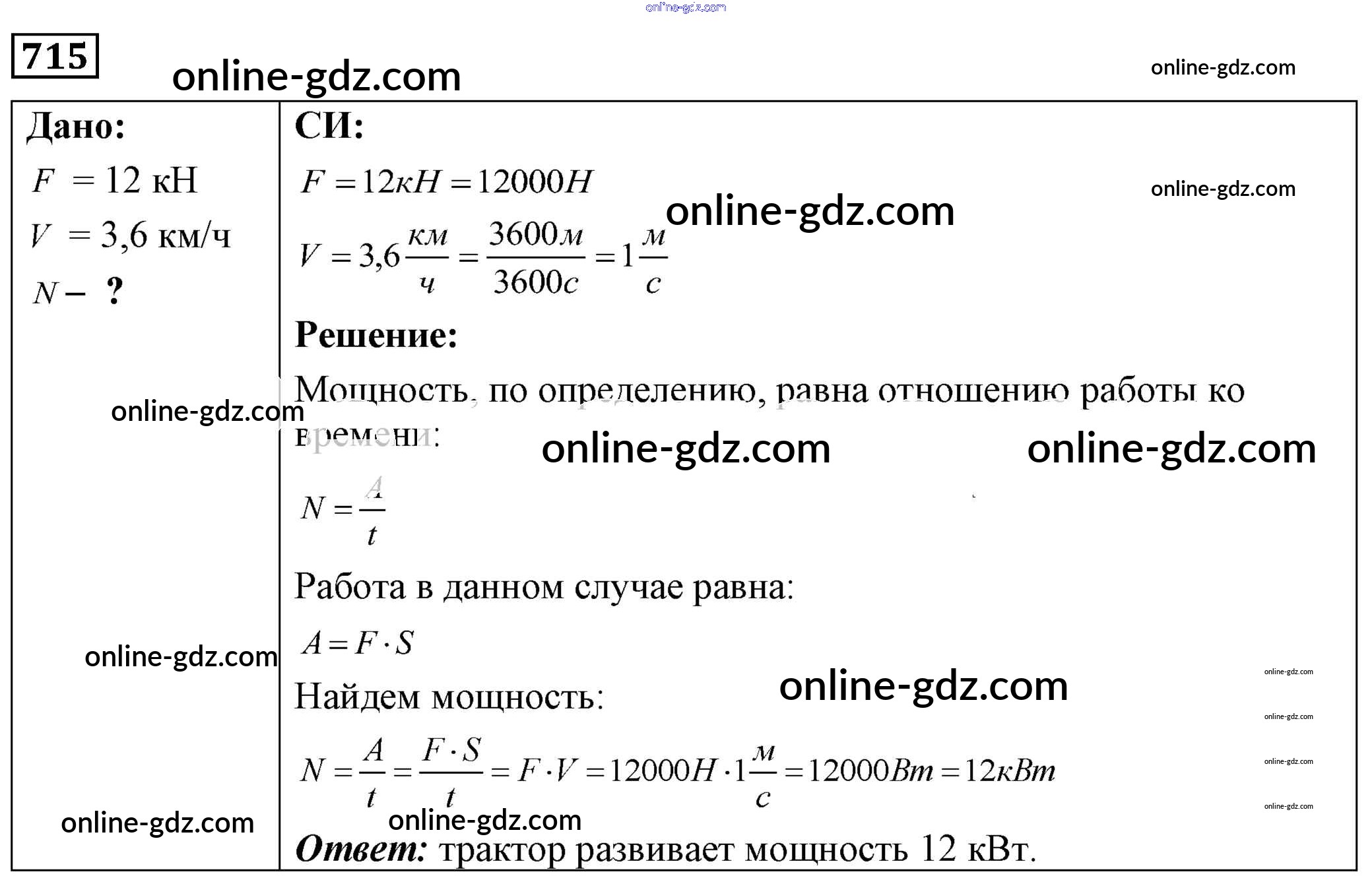 Готовые домашние задания по Физике за 7, 8, 9 класс Сборник задач Лукашик, Иванова 2011 - Задания 715