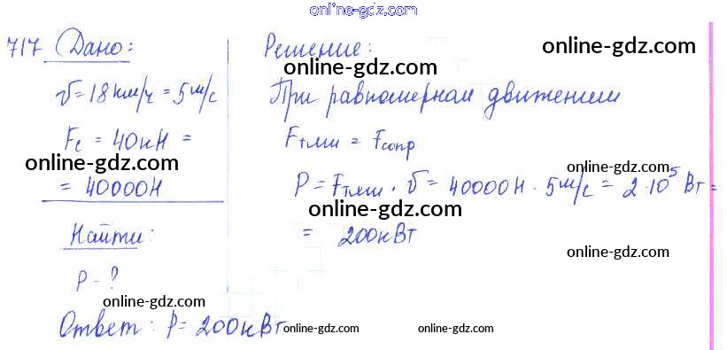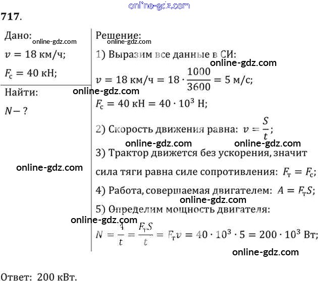 Готовые домашние задания по Физике за 7, 8, 9 класс Сборник задач Лукашик, Иванова 2011 - Задания 717