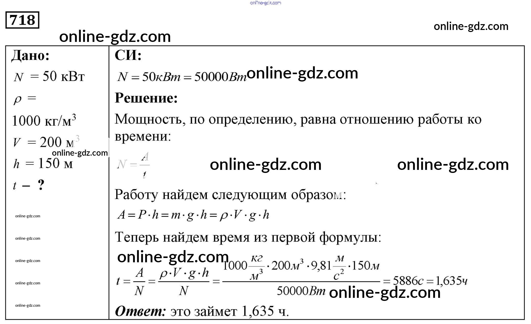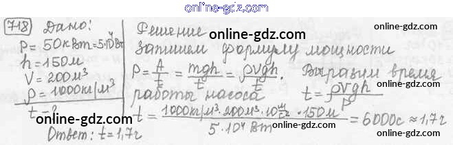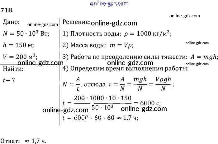 Готовые домашние задания по Физике за 7, 8, 9 класс Сборник задач Лукашик, Иванова 2011 - Задания 718