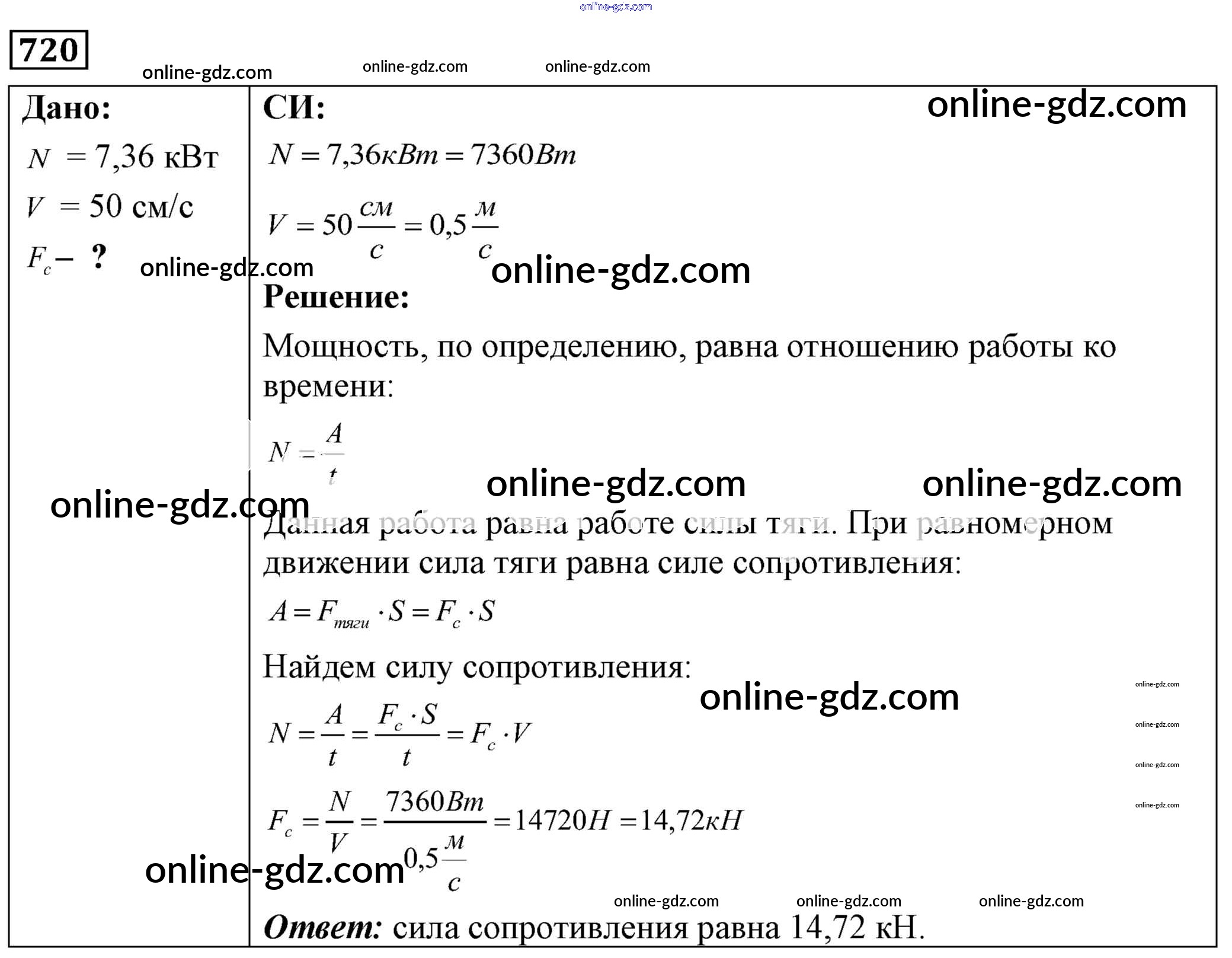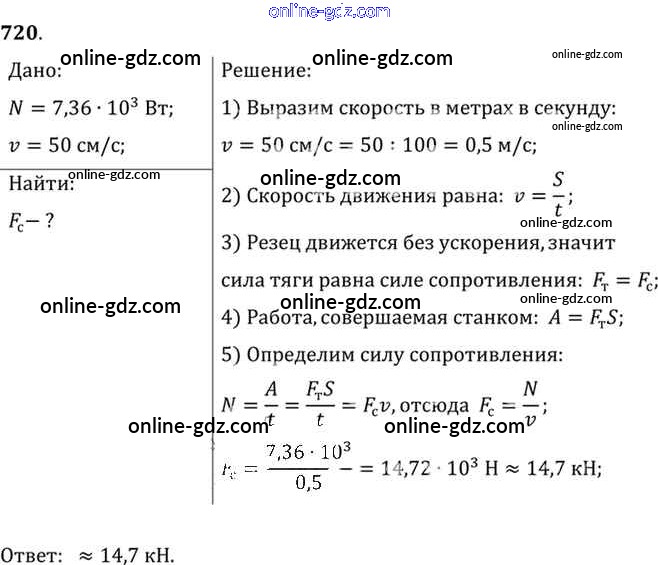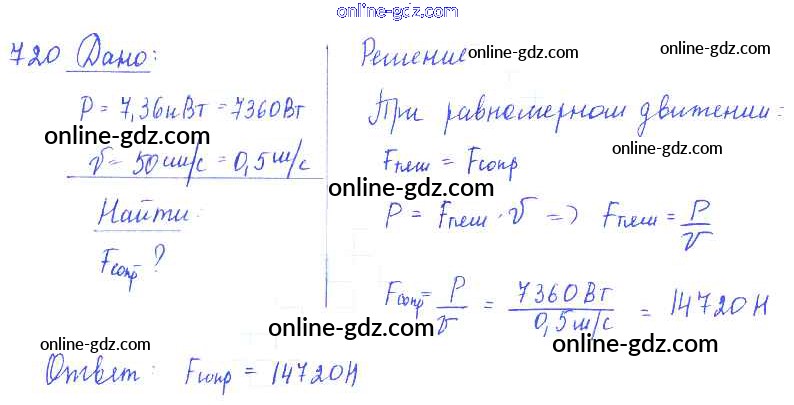 Готовые домашние задания по Физике за 7, 8, 9 класс Сборник задач Лукашик, Иванова 2011 - Задания 720