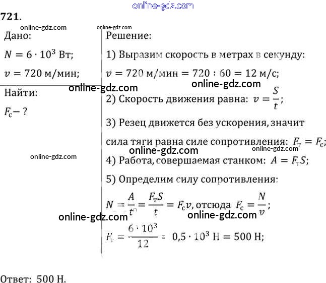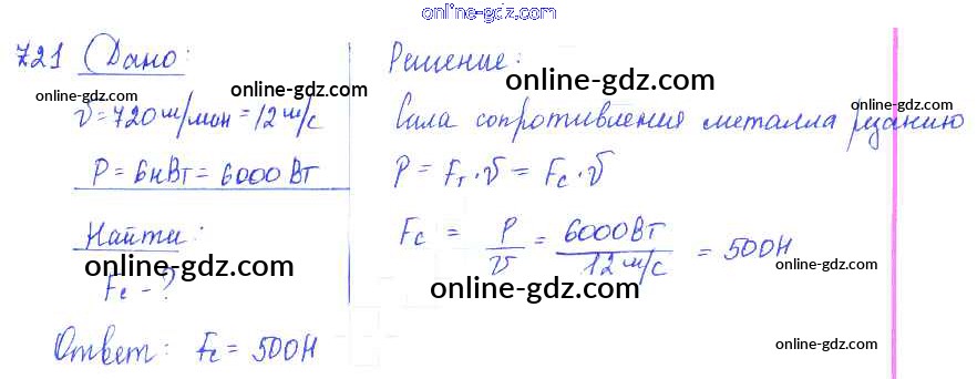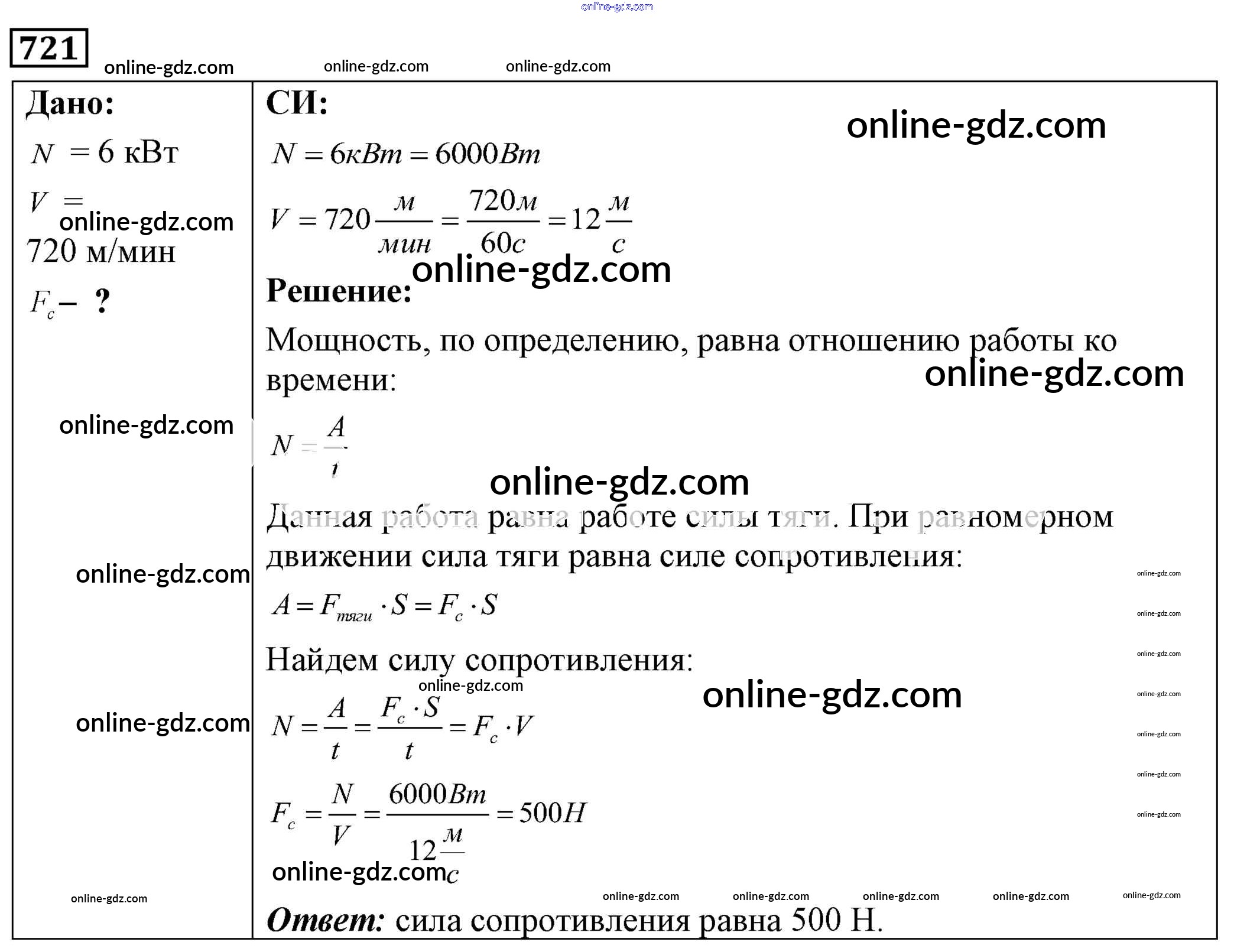 Готовые домашние задания по Физике за 7, 8, 9 класс Сборник задач Лукашик, Иванова 2011 - Задания 721