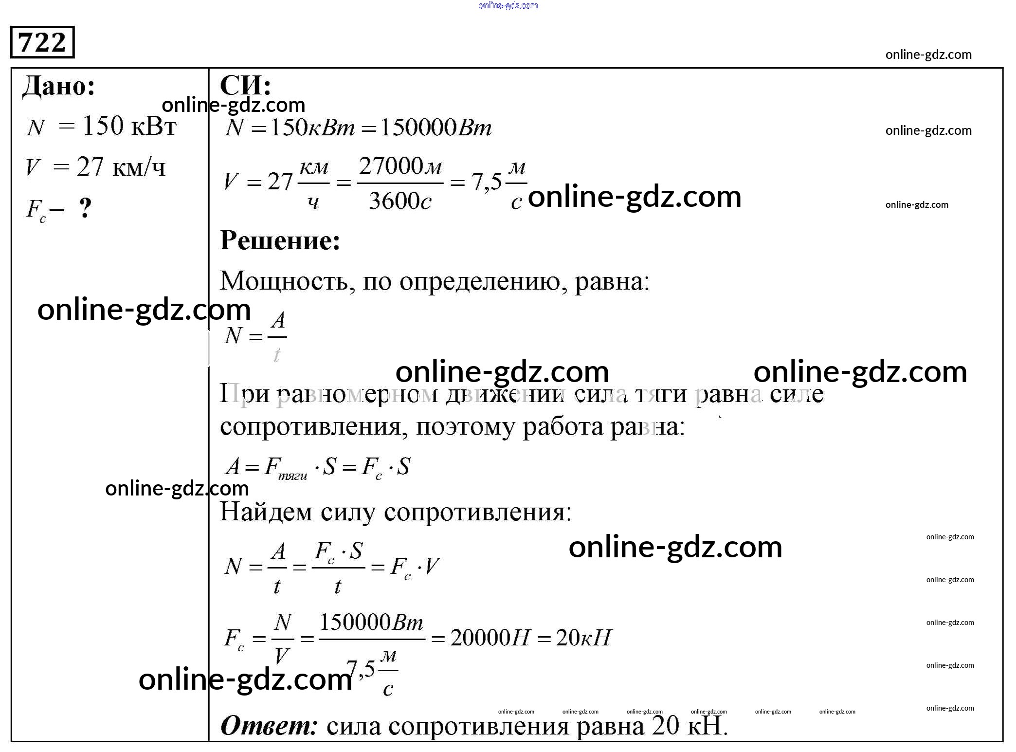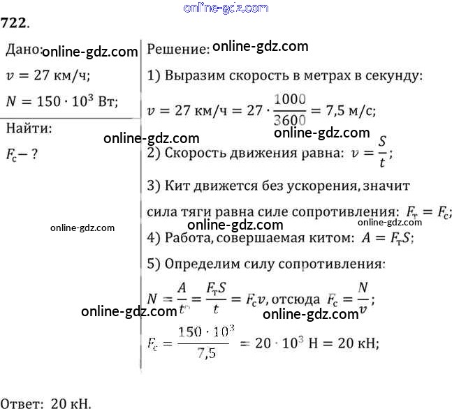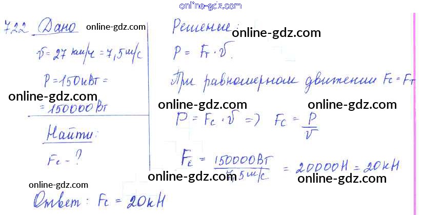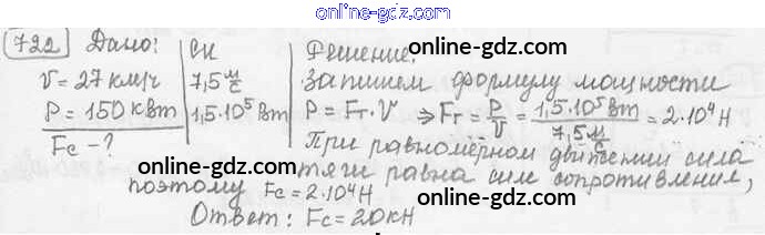 Готовые домашние задания по Физике за 7, 8, 9 класс Сборник задач Лукашик, Иванова 2011 - Задания 722