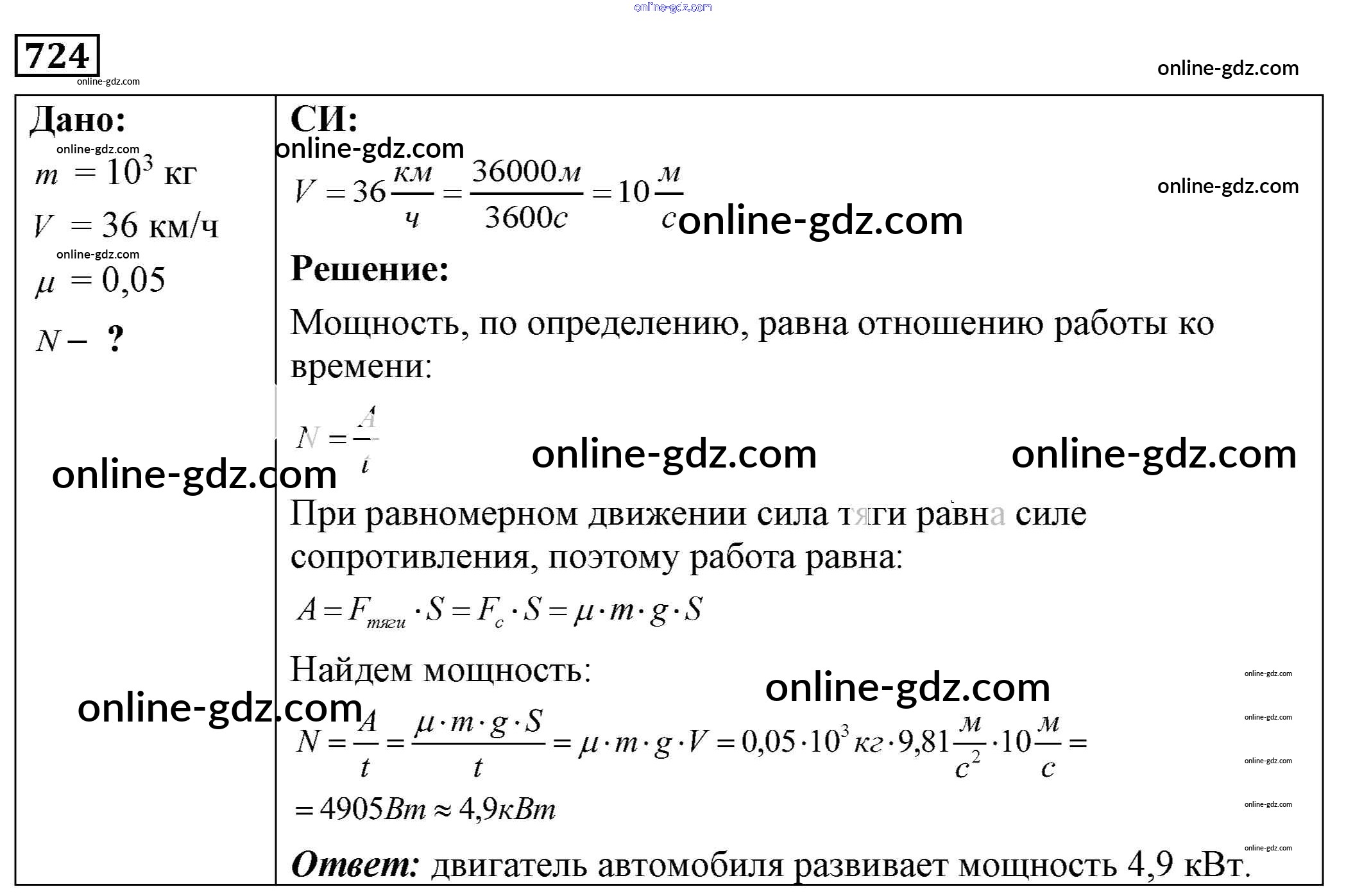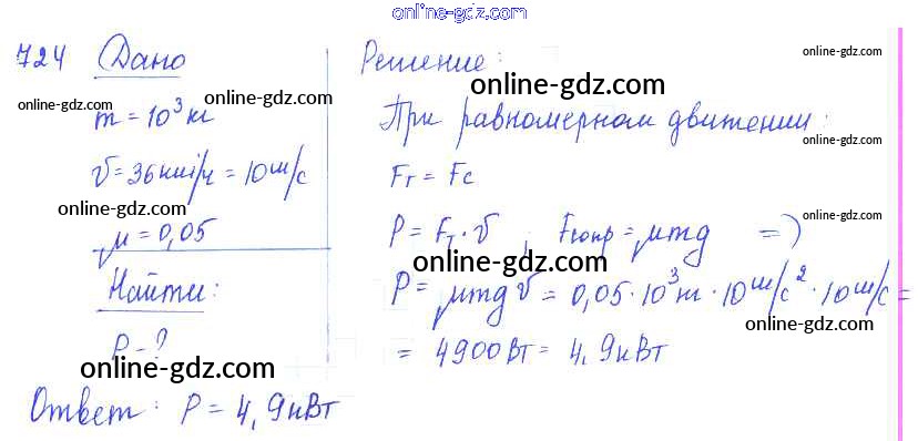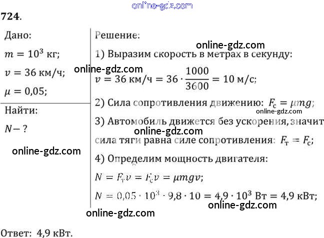 Готовые домашние задания по Физике за 7, 8, 9 класс Сборник задач Лукашик, Иванова 2011 - Задания 724