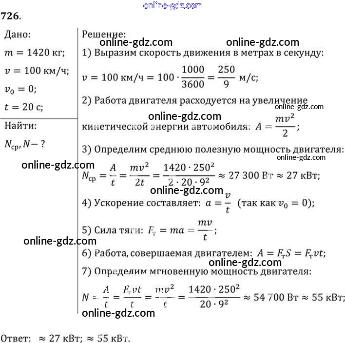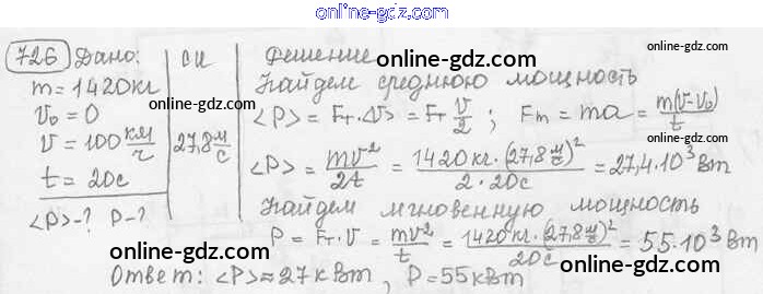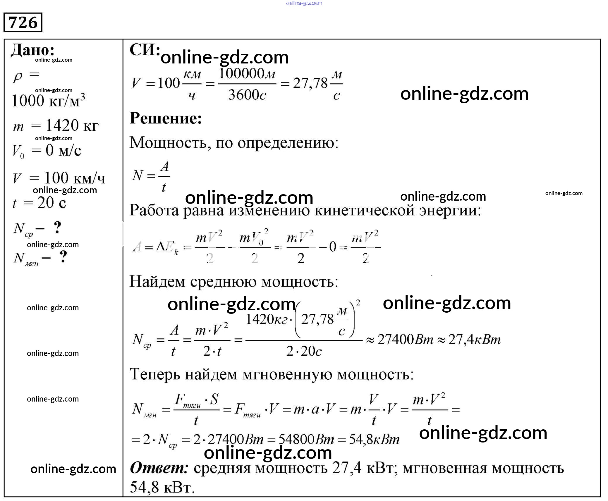 Готовые домашние задания по Физике за 7, 8, 9 класс Сборник задач Лукашик, Иванова 2011 - Задания 726