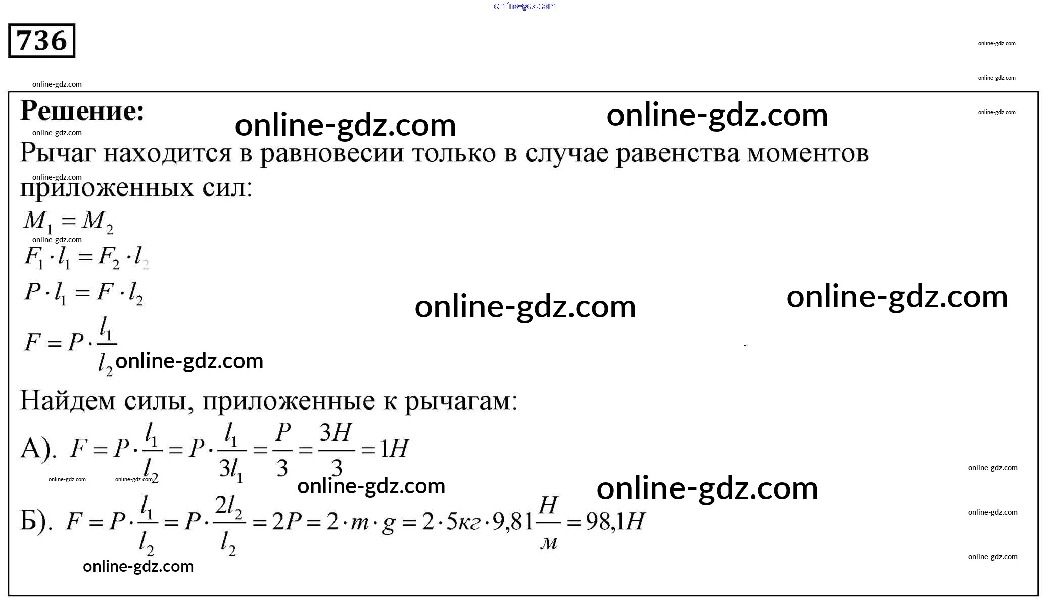 Готовые домашние задания по Физике за 7, 8, 9 класс Сборник задач Лукашик, Иванова 2011 - Задания 736