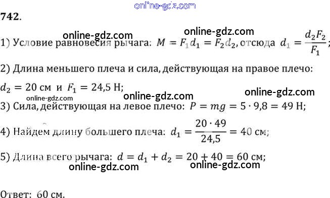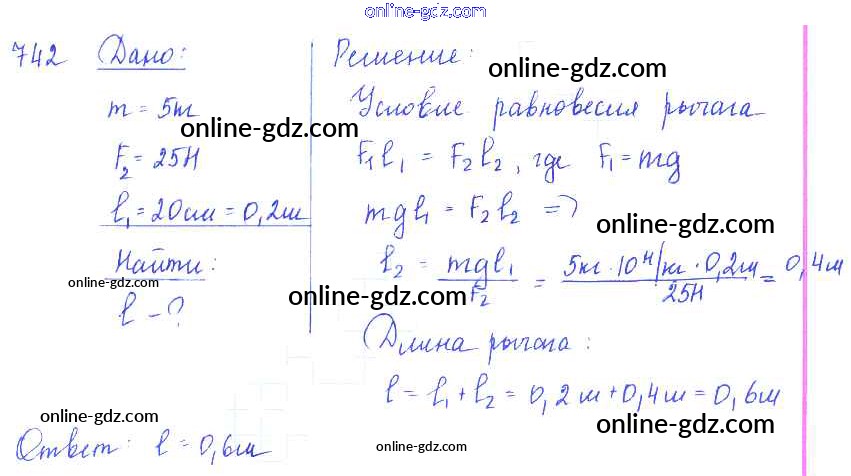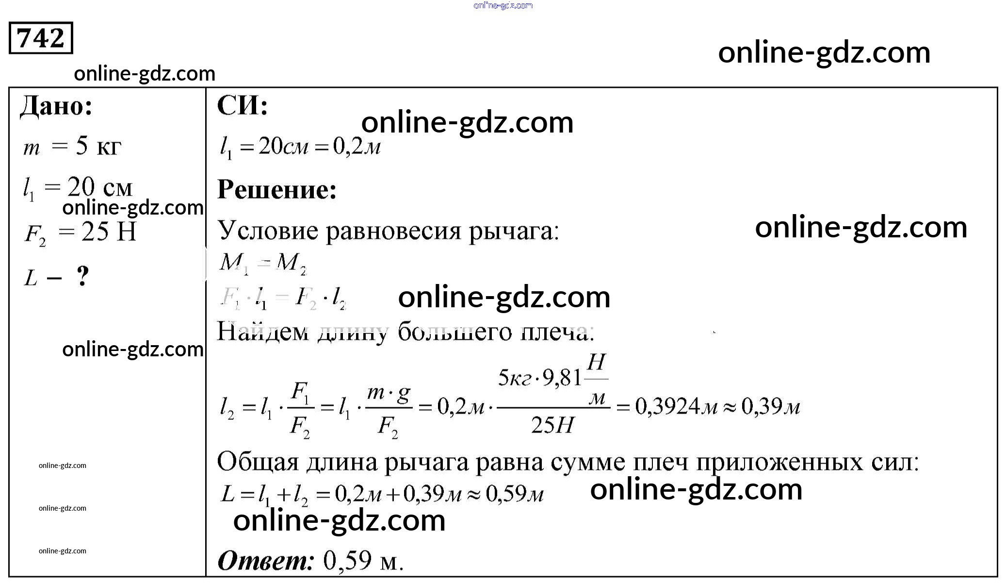 Готовые домашние задания по Физике за 7, 8, 9 класс Сборник задач Лукашик, Иванова 2011 - Задания 742