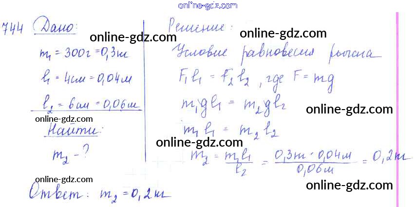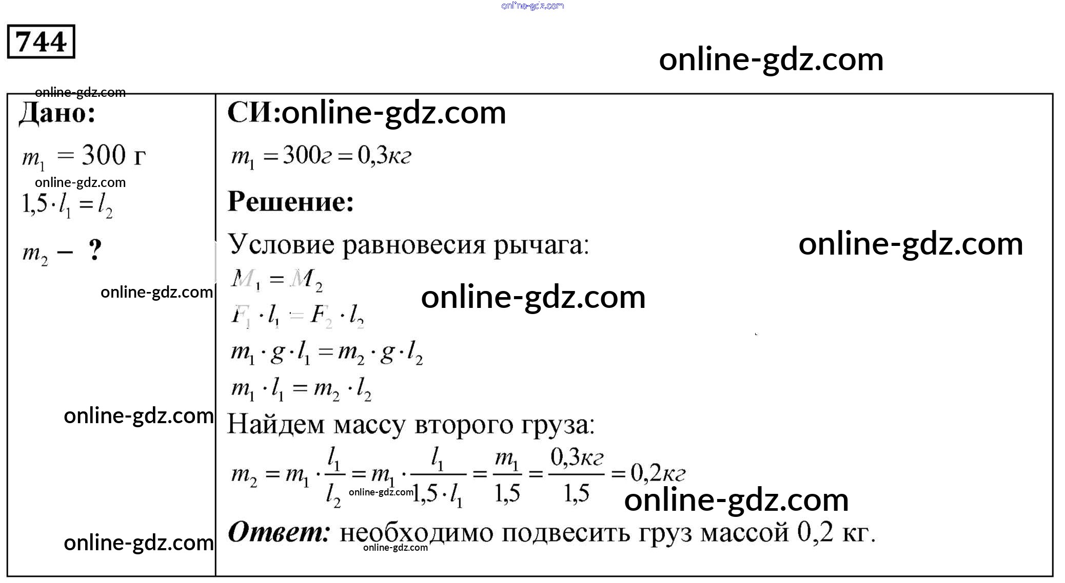 Готовые домашние задания по Физике за 7, 8, 9 класс Сборник задач Лукашик, Иванова 2011 - Задания 744
