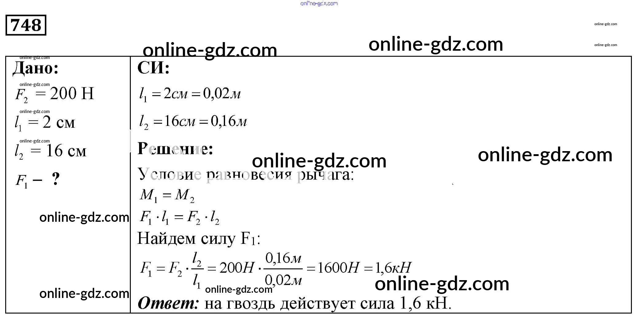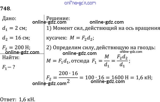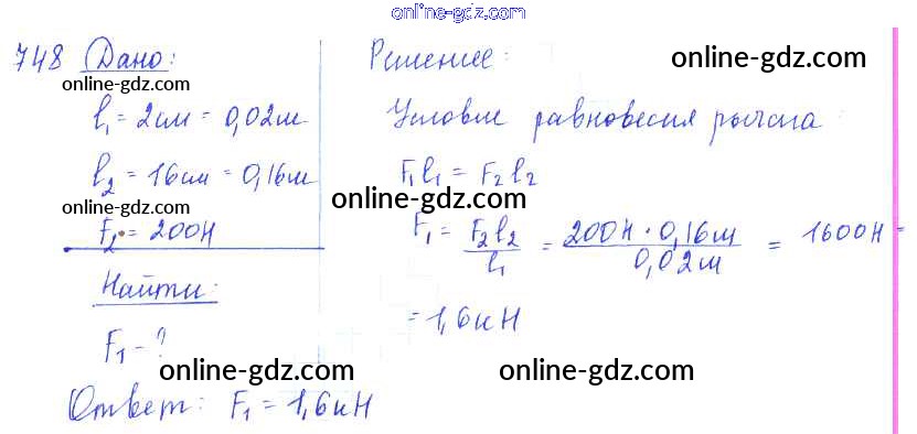 Готовые домашние задания по Физике за 7, 8, 9 класс Сборник задач Лукашик, Иванова 2011 - Задания 748