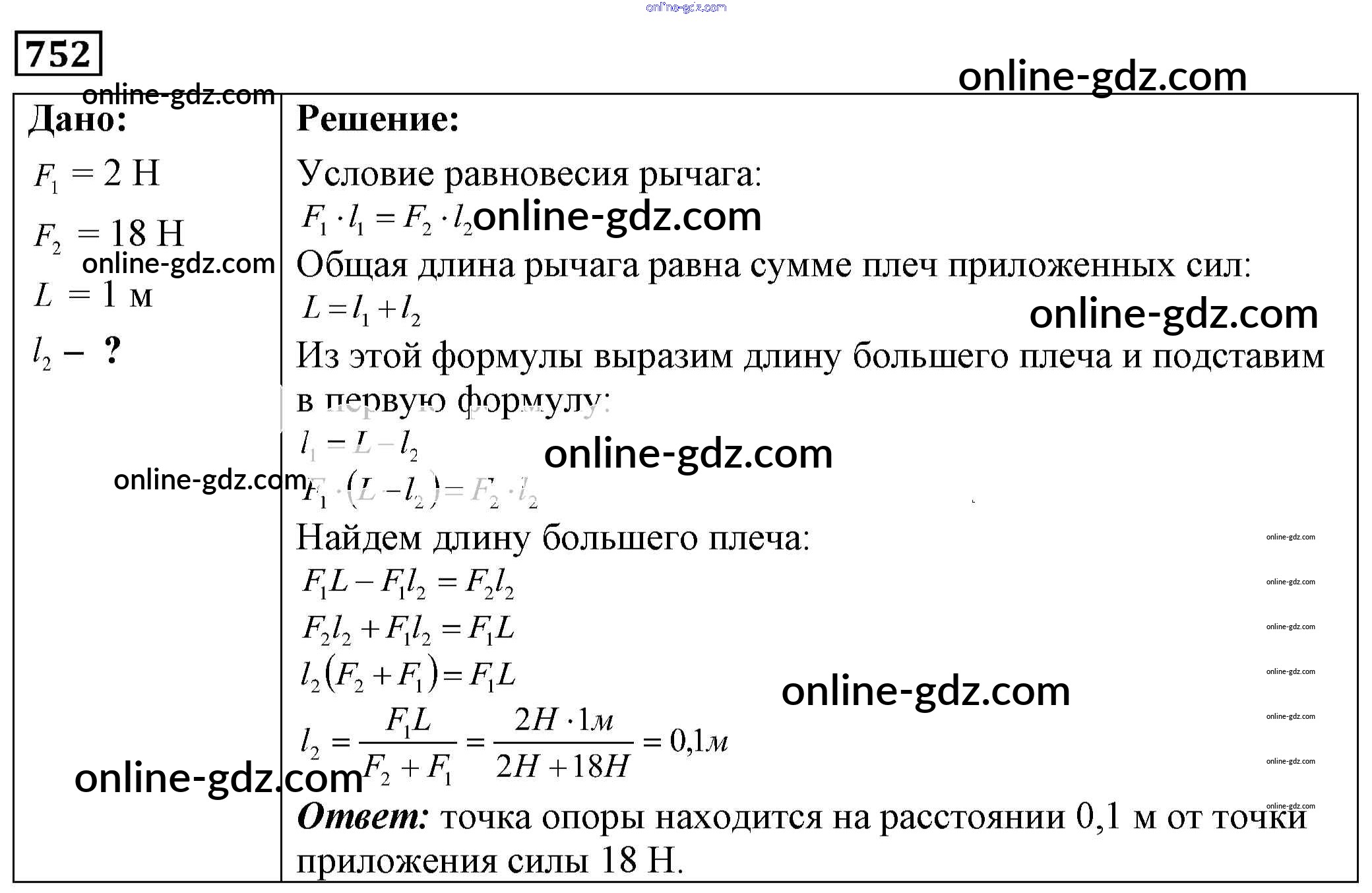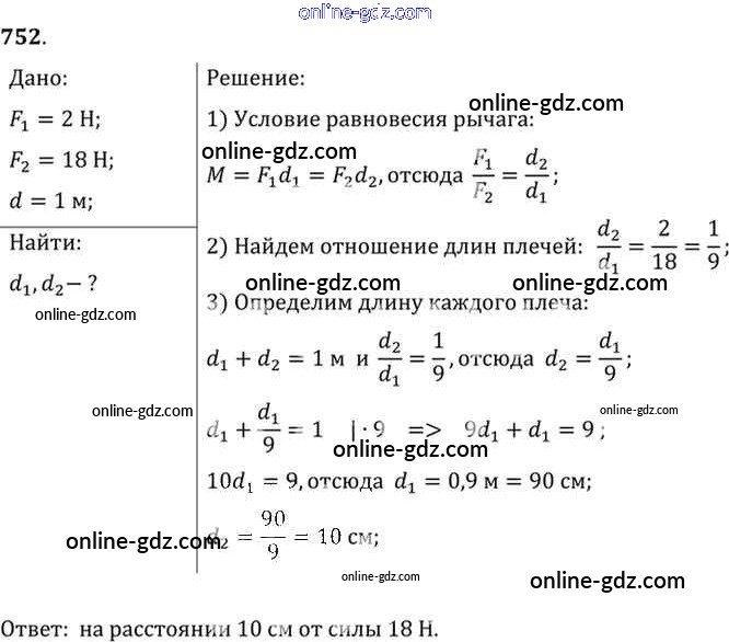 Готовые домашние задания по Физике за 7, 8, 9 класс Сборник задач Лукашик, Иванова 2011 - Задания 752