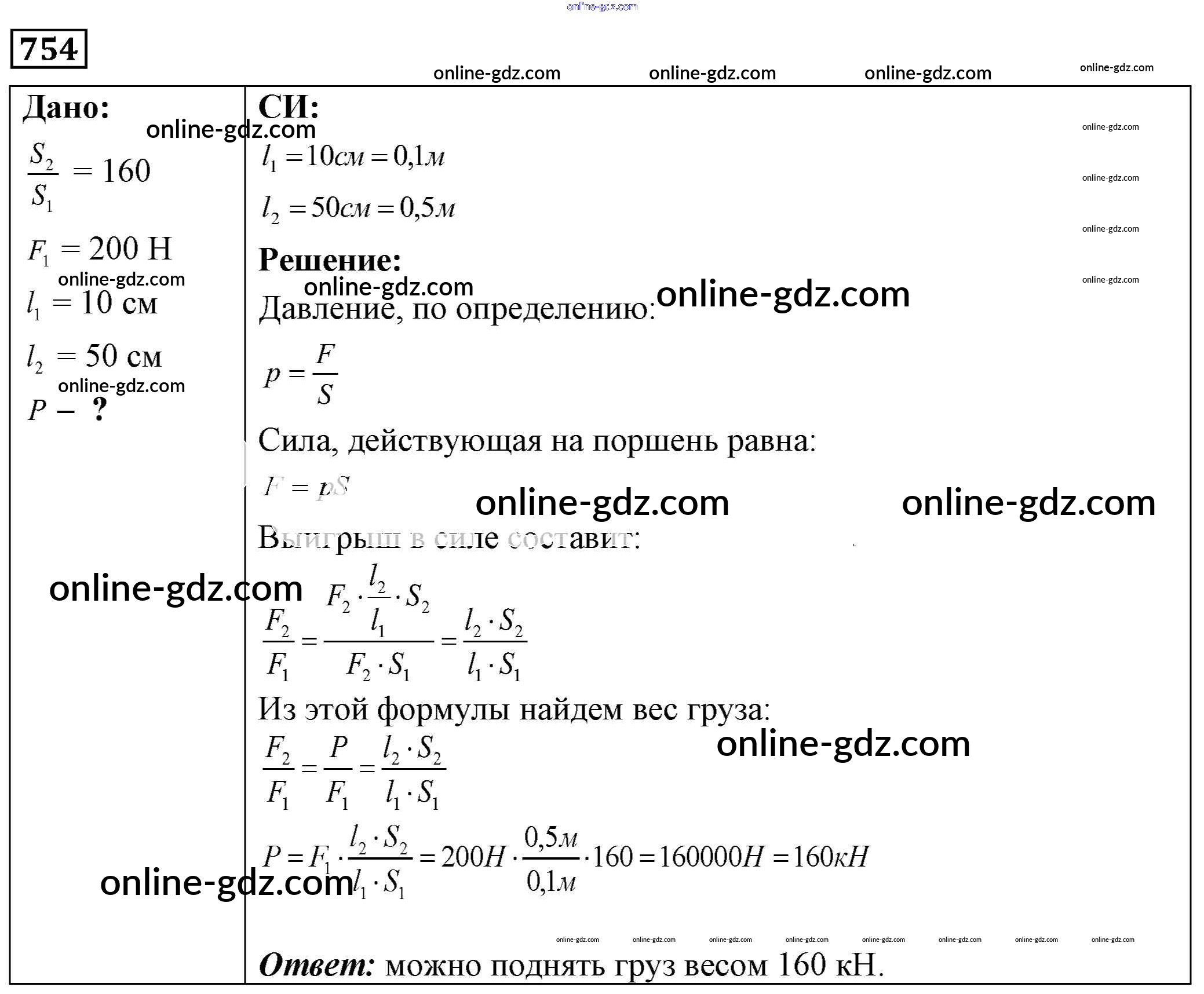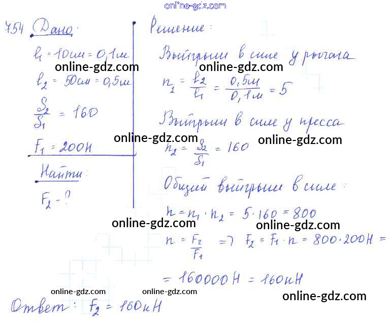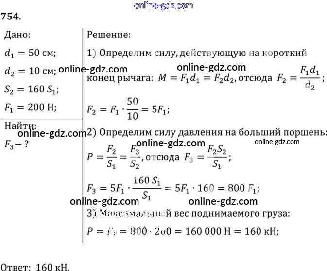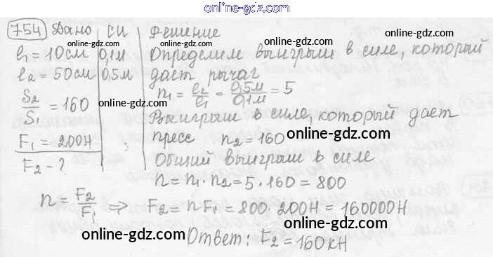 Готовые домашние задания по Физике за 7, 8, 9 класс Сборник задач Лукашик, Иванова 2011 - Задания 754