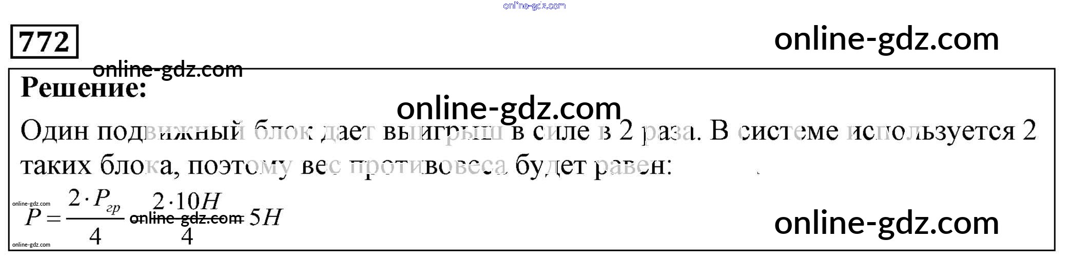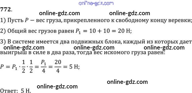 Готовые домашние задания по Физике за 7, 8, 9 класс Сборник задач Лукашик, Иванова 2011 - Задания 772