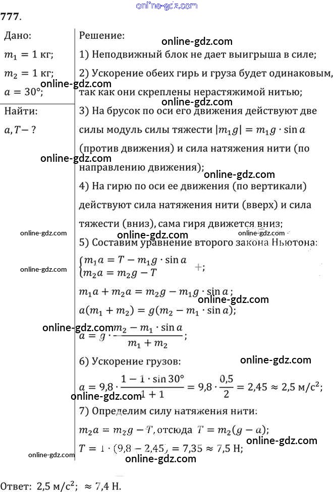 Готовые домашние задания по Физике за 7, 8, 9 класс Сборник задач Лукашик, Иванова 2011 - Задания 777