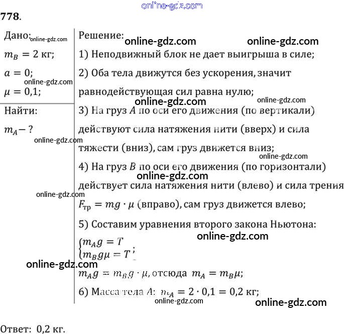 Готовые домашние задания по Физике за 7, 8, 9 класс Сборник задач Лукашик, Иванова 2011 - Задания 778