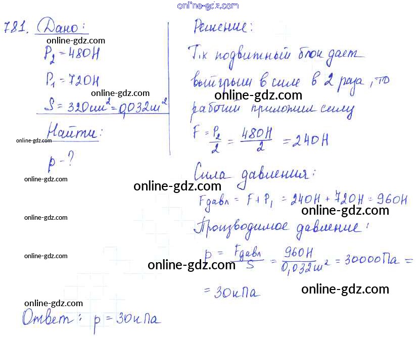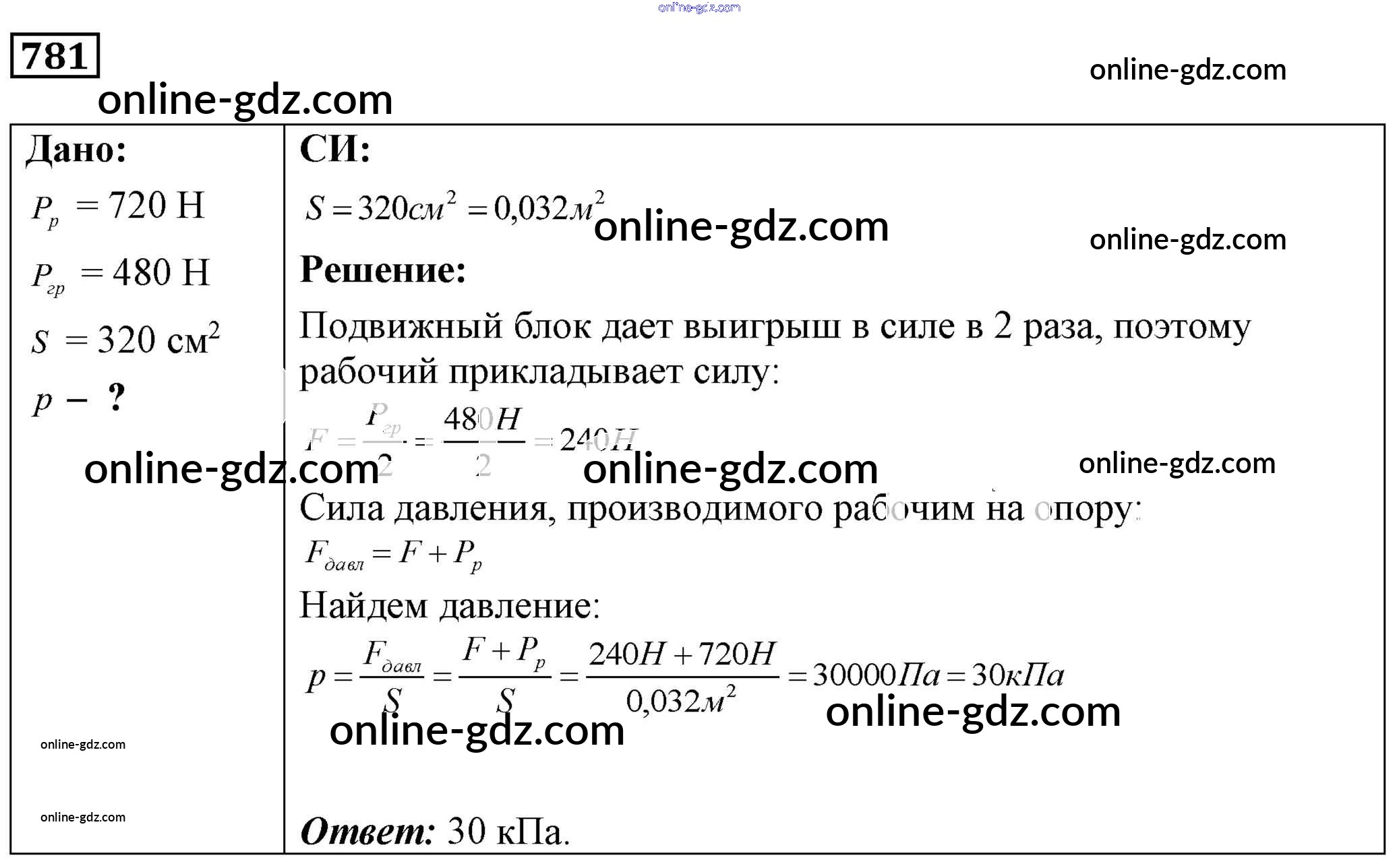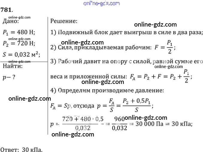 Готовые домашние задания по Физике за 7, 8, 9 класс Сборник задач Лукашик, Иванова 2011 - Задания 781