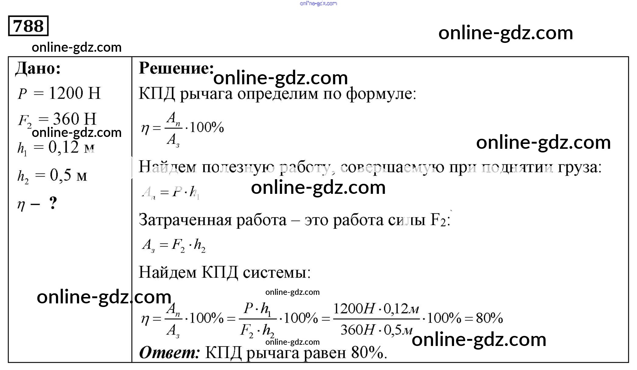 Готовые домашние задания по Физике за 7, 8, 9 класс Сборник задач Лукашик, Иванова 2011 - Задания 788