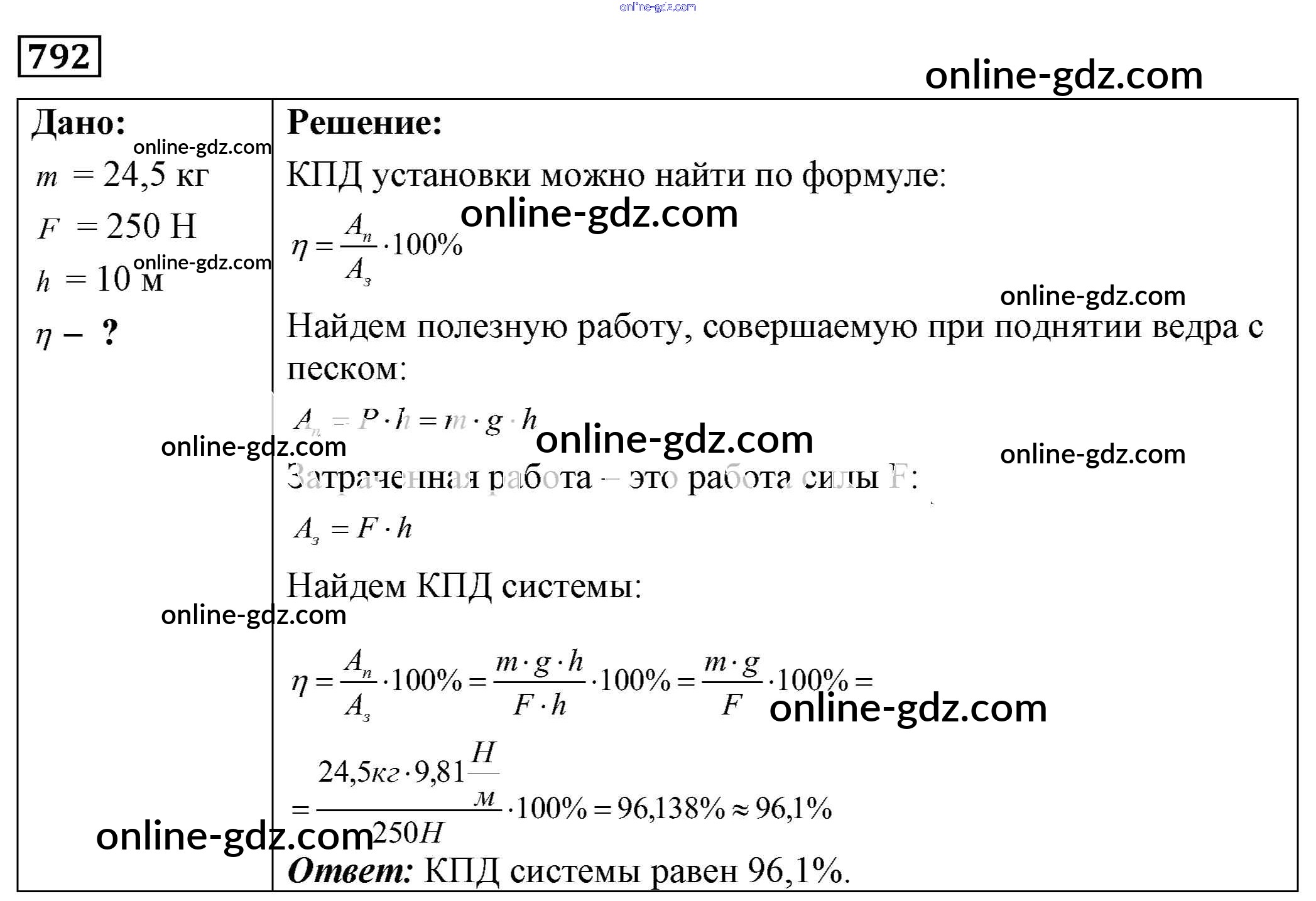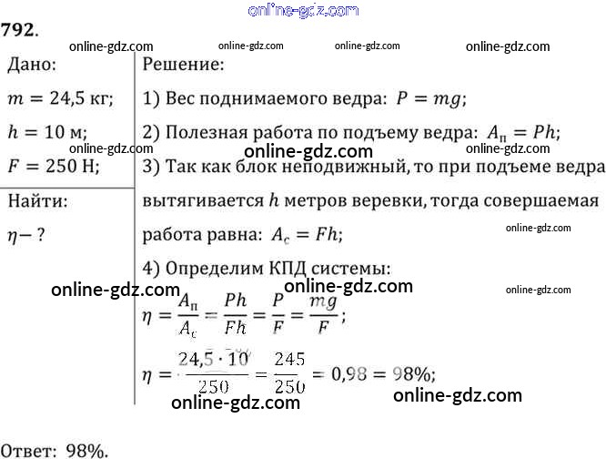 Готовые домашние задания по Физике за 7, 8, 9 класс Сборник задач Лукашик, Иванова 2011 - Задания 792