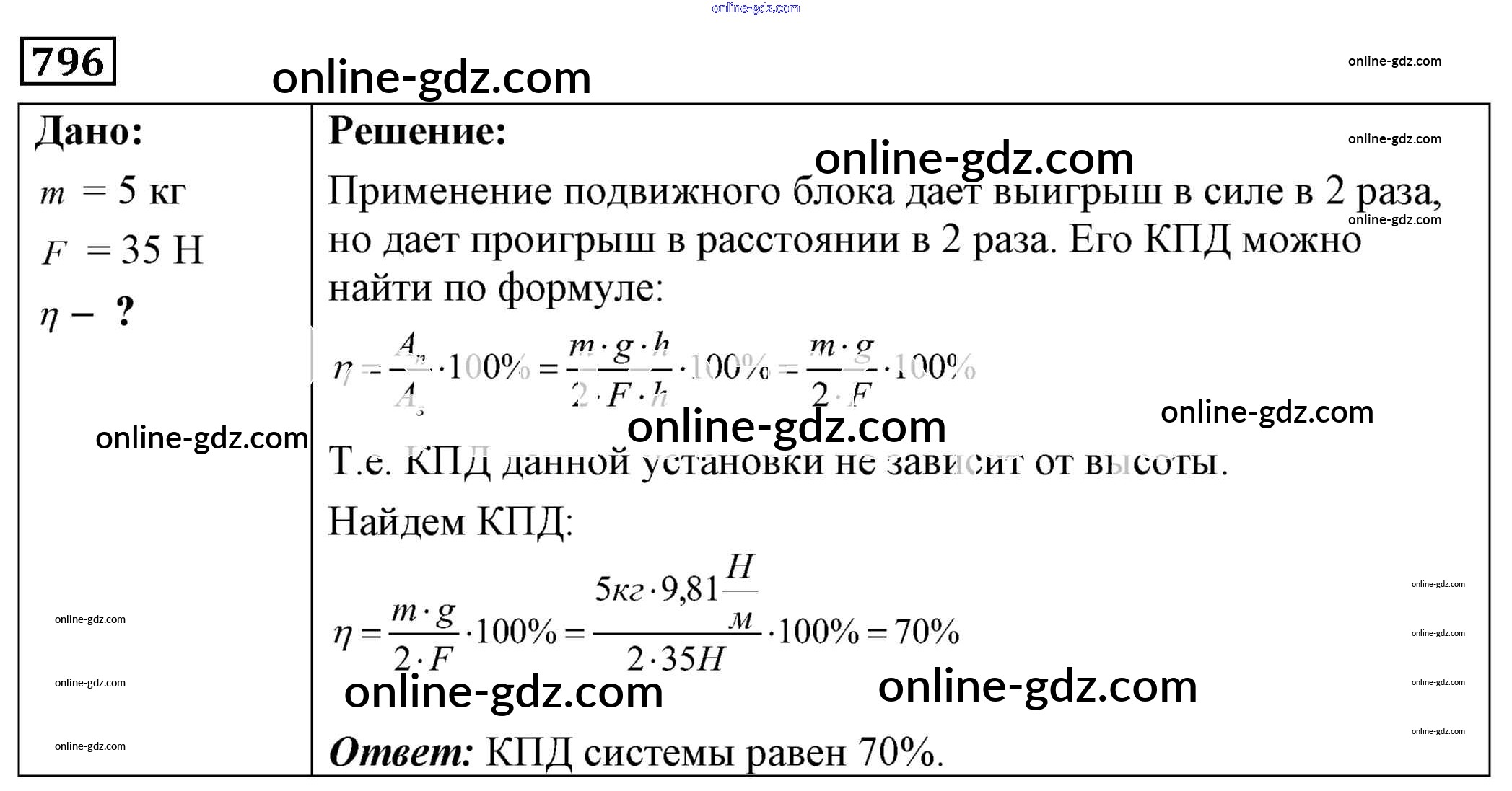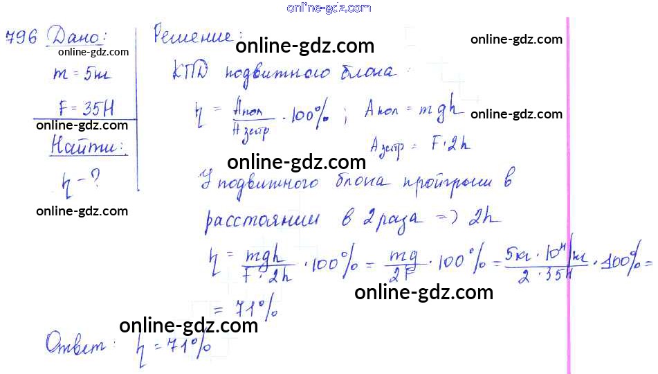 Готовые домашние задания по Физике за 7, 8, 9 класс Сборник задач Лукашик, Иванова 2011 - Задания 796