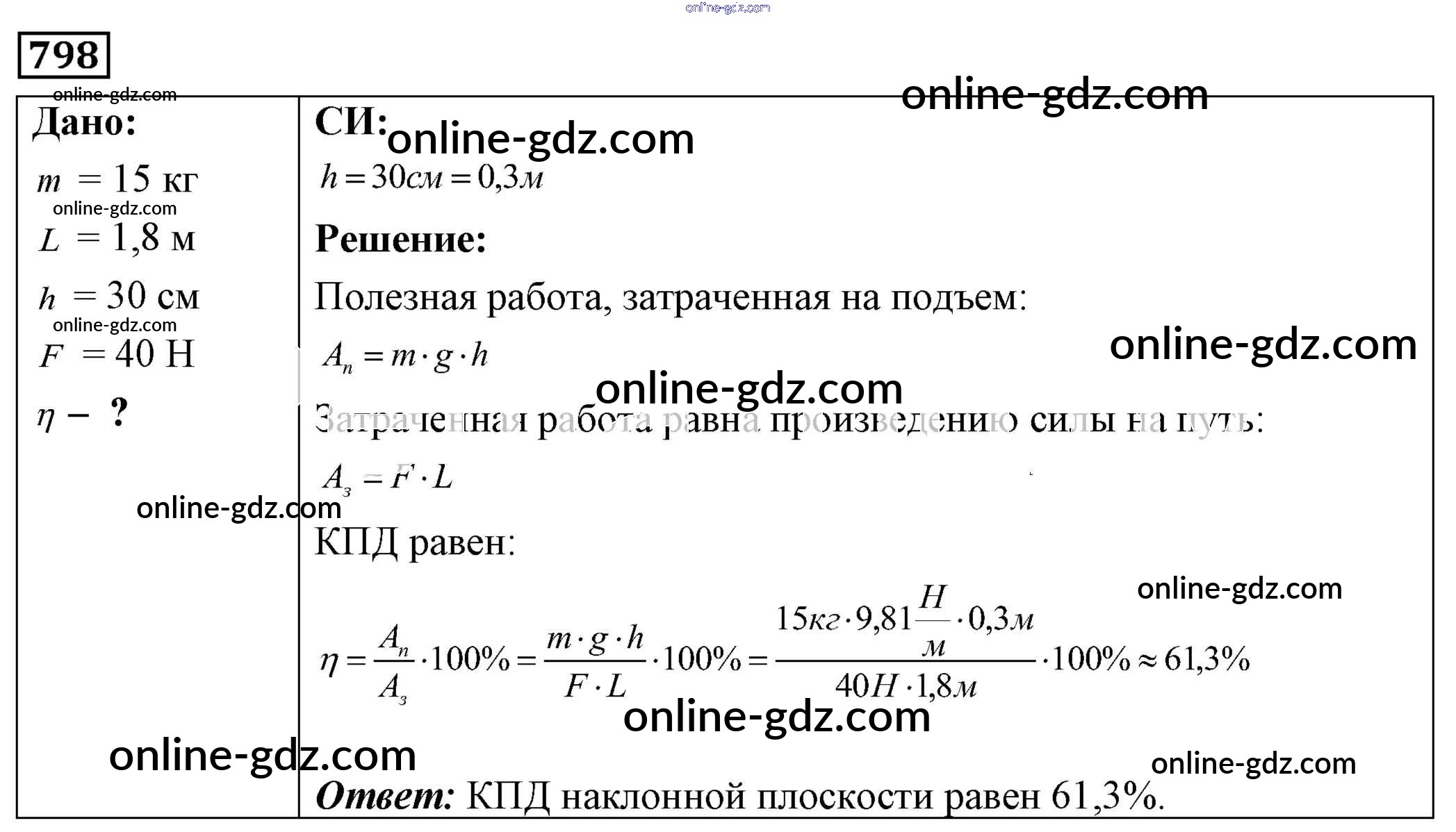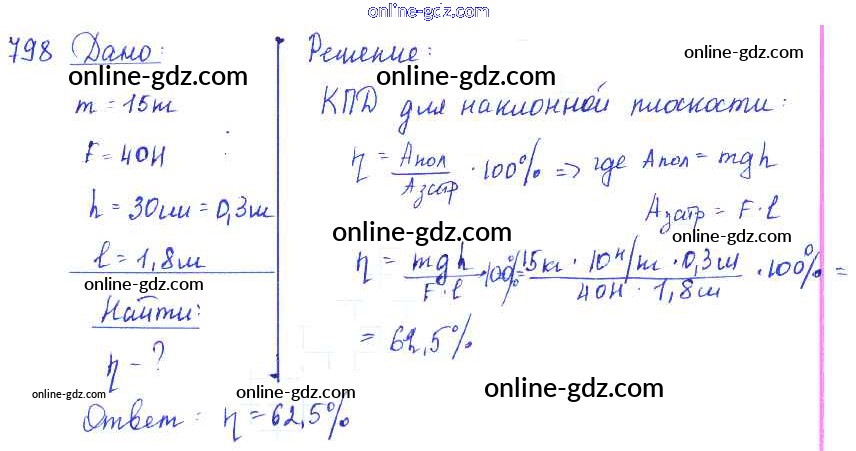 Готовые домашние задания по Физике за 7, 8, 9 класс Сборник задач Лукашик, Иванова 2011 - Задания 798