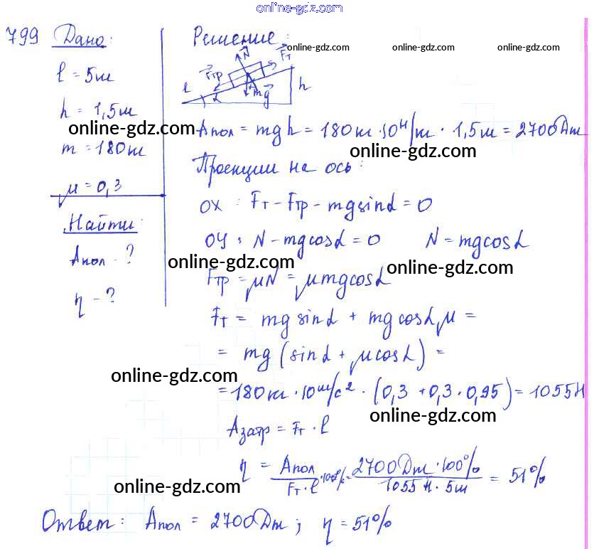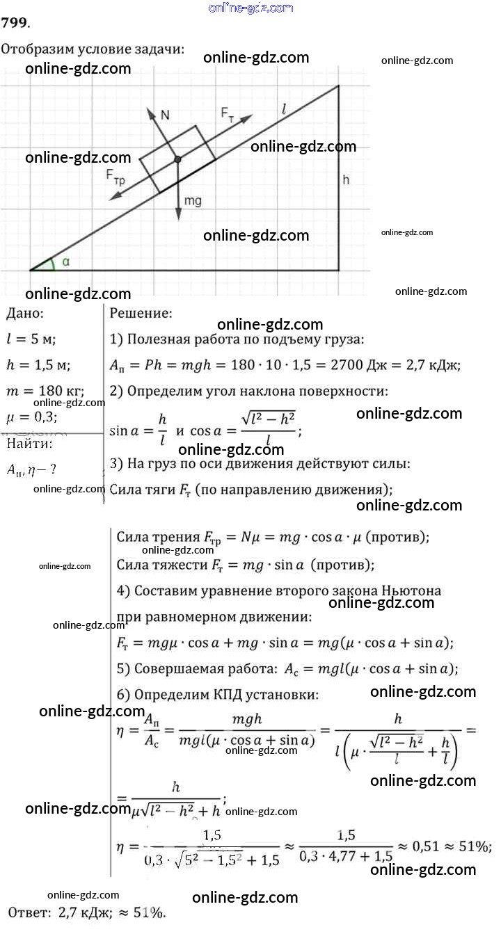 Готовые домашние задания по Физике за 7, 8, 9 класс Сборник задач Лукашик, Иванова 2011 - Задания 799