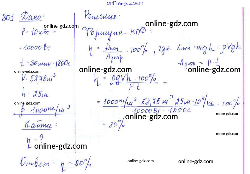 Готовые домашние задания по Физике за 7, 8, 9 класс Сборник задач Лукашик, Иванова 2011 - Задания 801