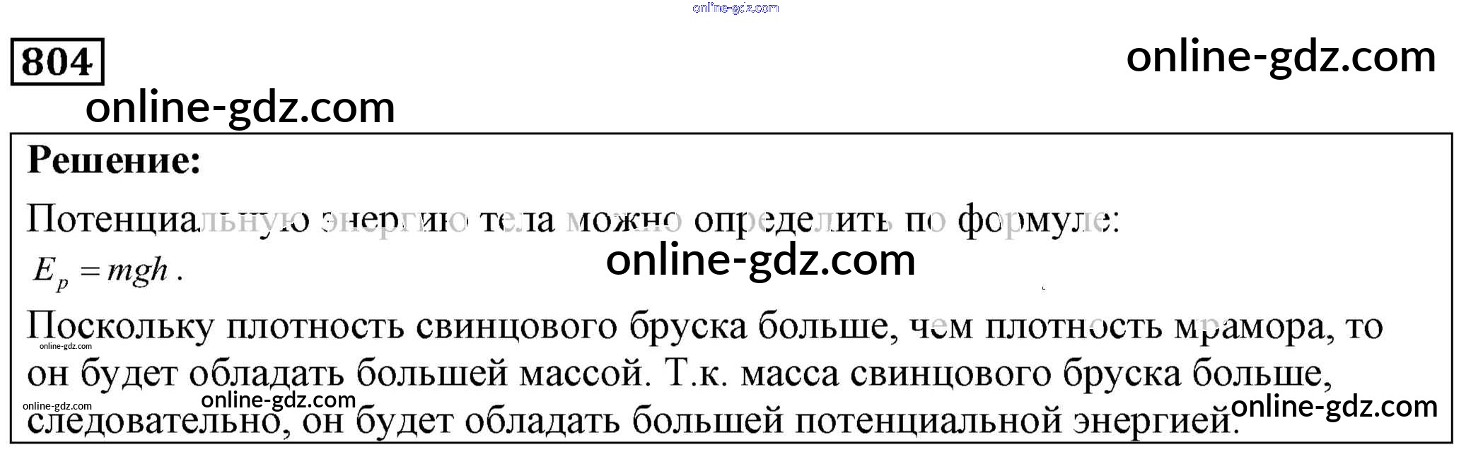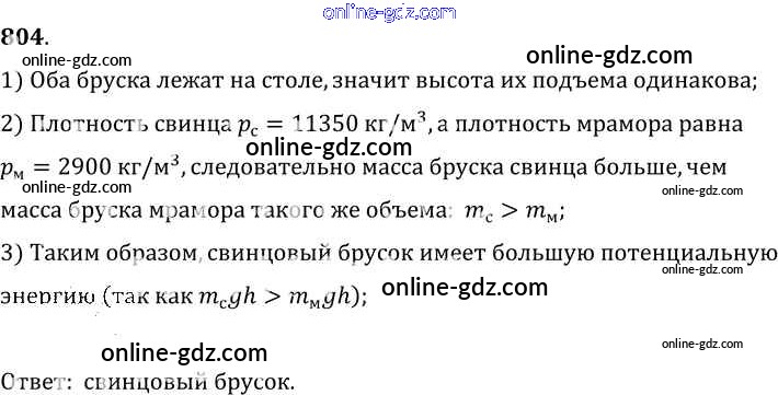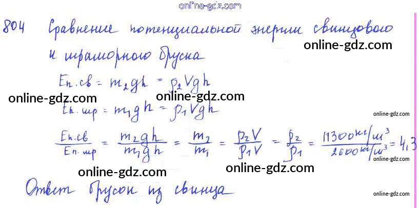 Готовые домашние задания по Физике за 7, 8, 9 класс Сборник задач Лукашик, Иванова 2011 - Задания 804