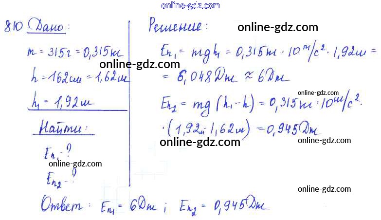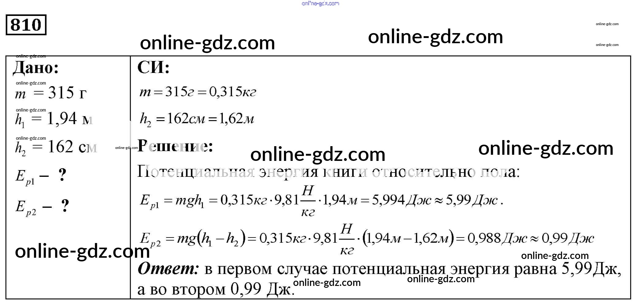 Готовые домашние задания по Физике за 7, 8, 9 класс Сборник задач Лукашик, Иванова 2011 - Задания 810