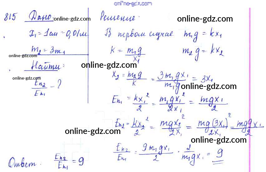 Готовые домашние задания по Физике за 7, 8, 9 класс Сборник задач Лукашик, Иванова 2011 - Задания 815