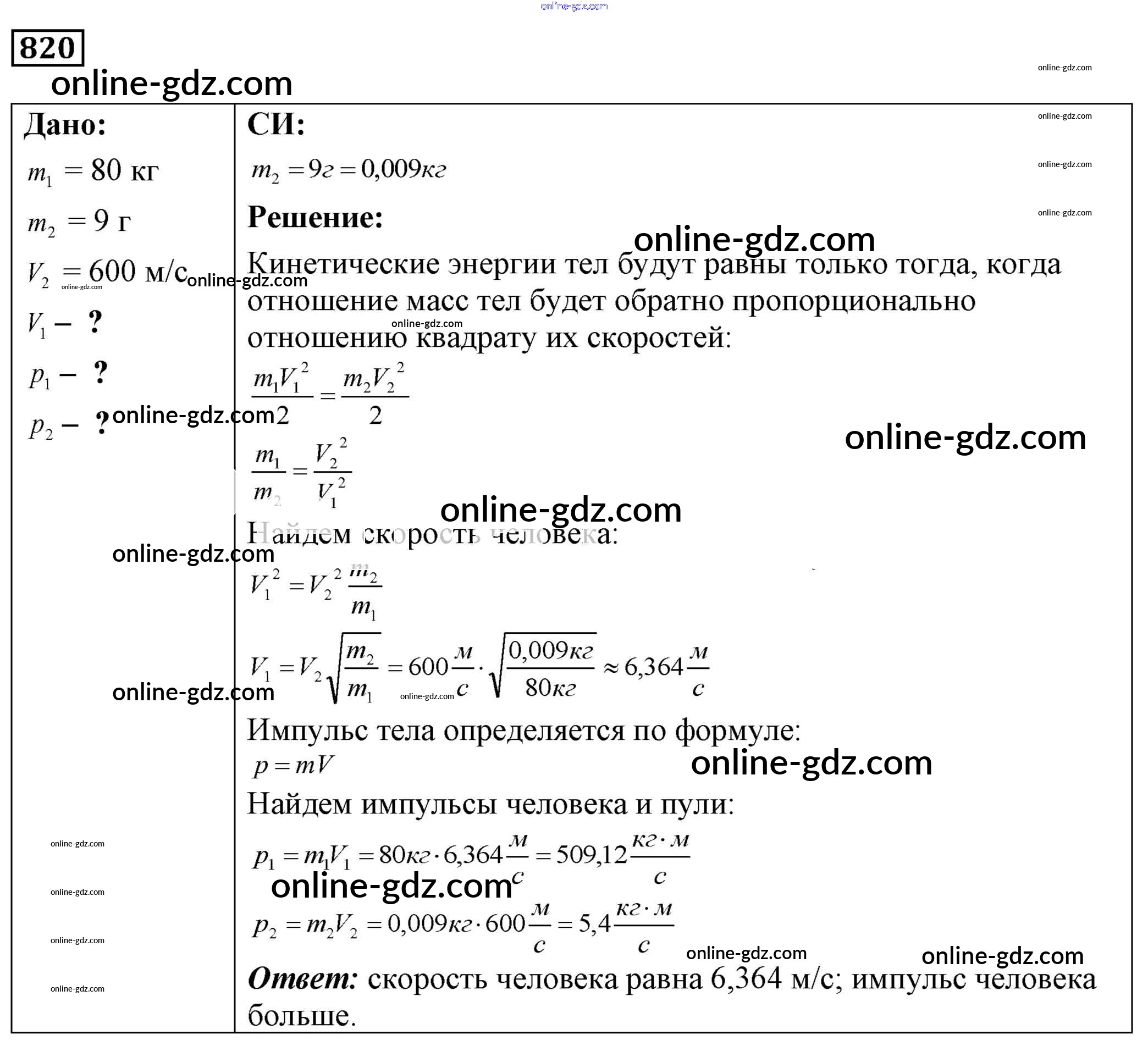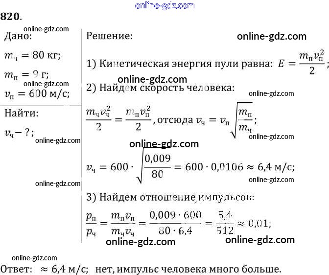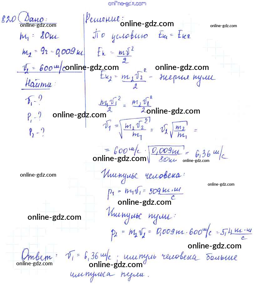 Готовые домашние задания по Физике за 7, 8, 9 класс Сборник задач Лукашик, Иванова 2011 - Задания 820