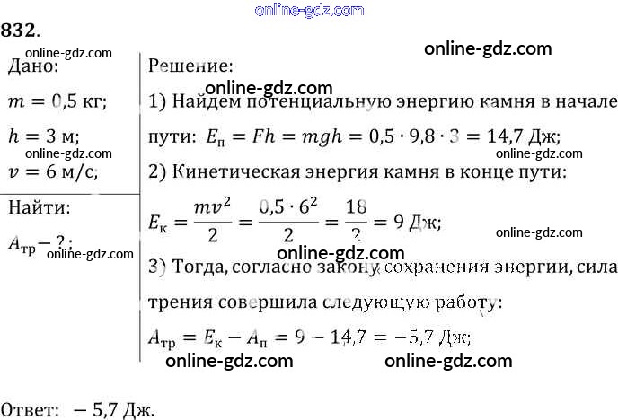 Готовые домашние задания по Физике за 7, 8, 9 класс Сборник задач Лукашик, Иванова 2011 - Задания 832