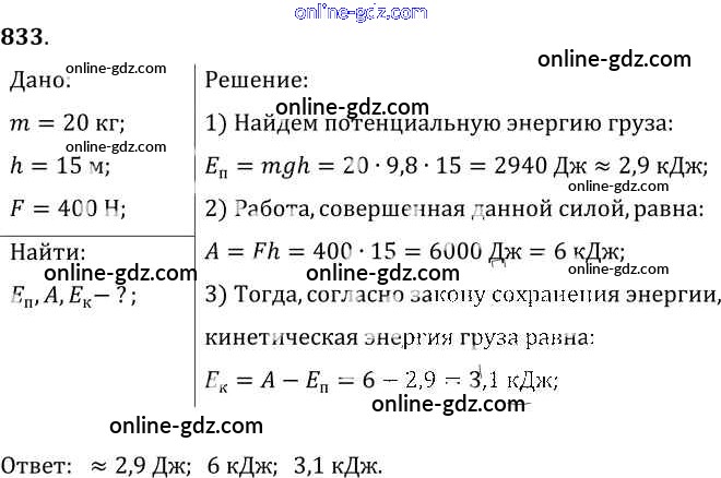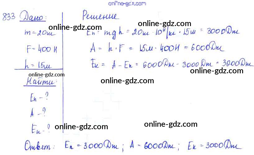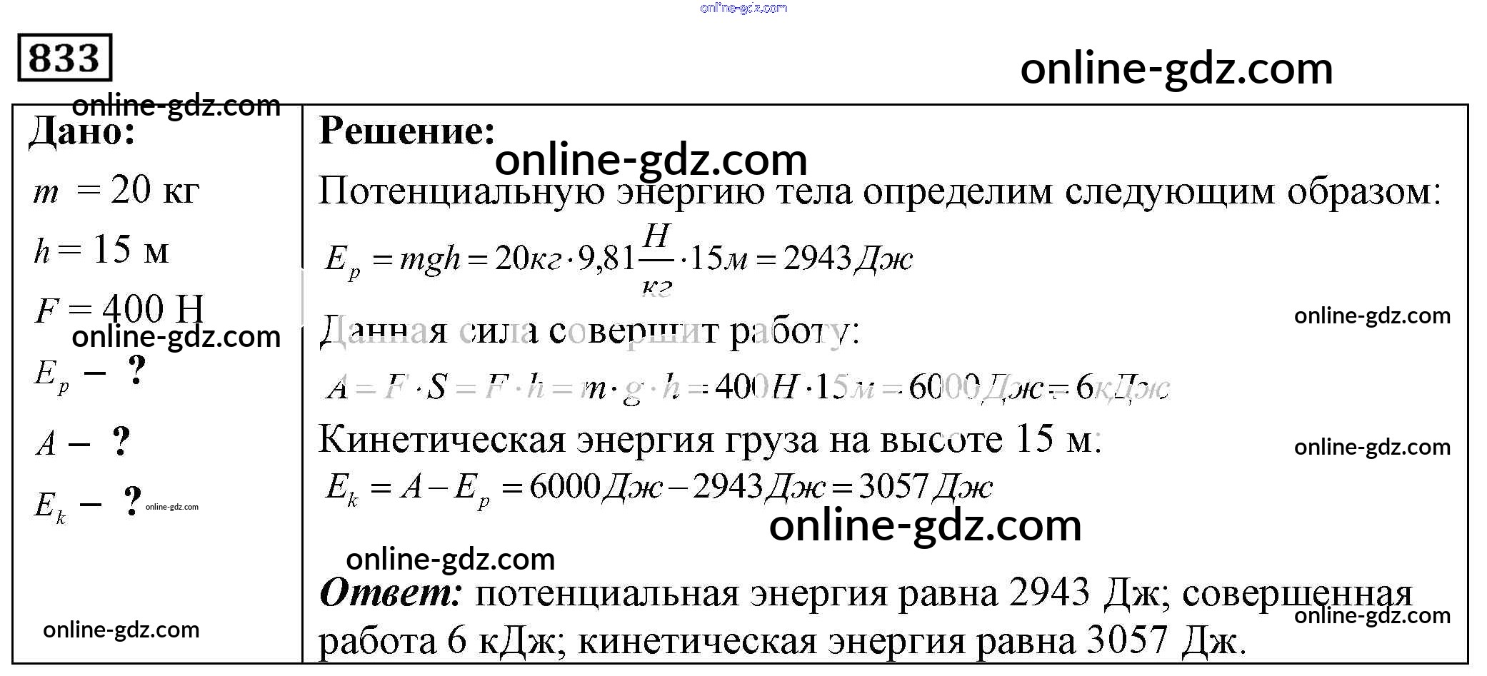 Готовые домашние задания по Физике за 7, 8, 9 класс Сборник задач Лукашик, Иванова 2011 - Задания 833