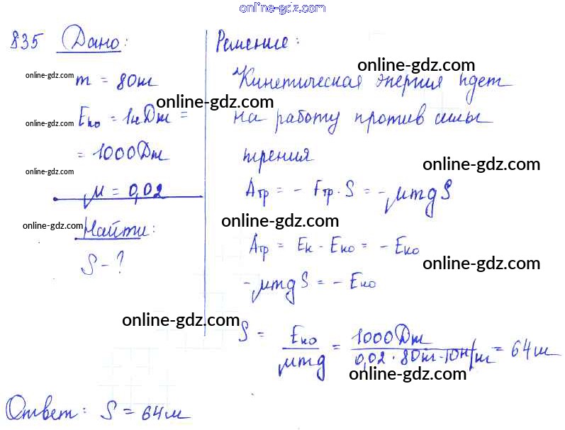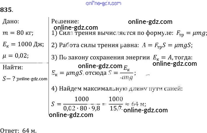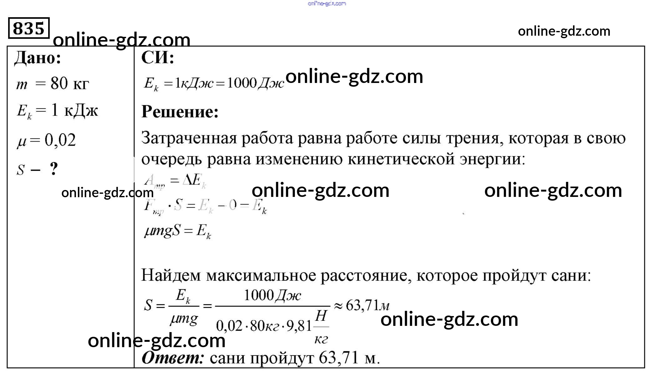 Готовые домашние задания по Физике за 7, 8, 9 класс Сборник задач Лукашик, Иванова 2011 - Задания 835