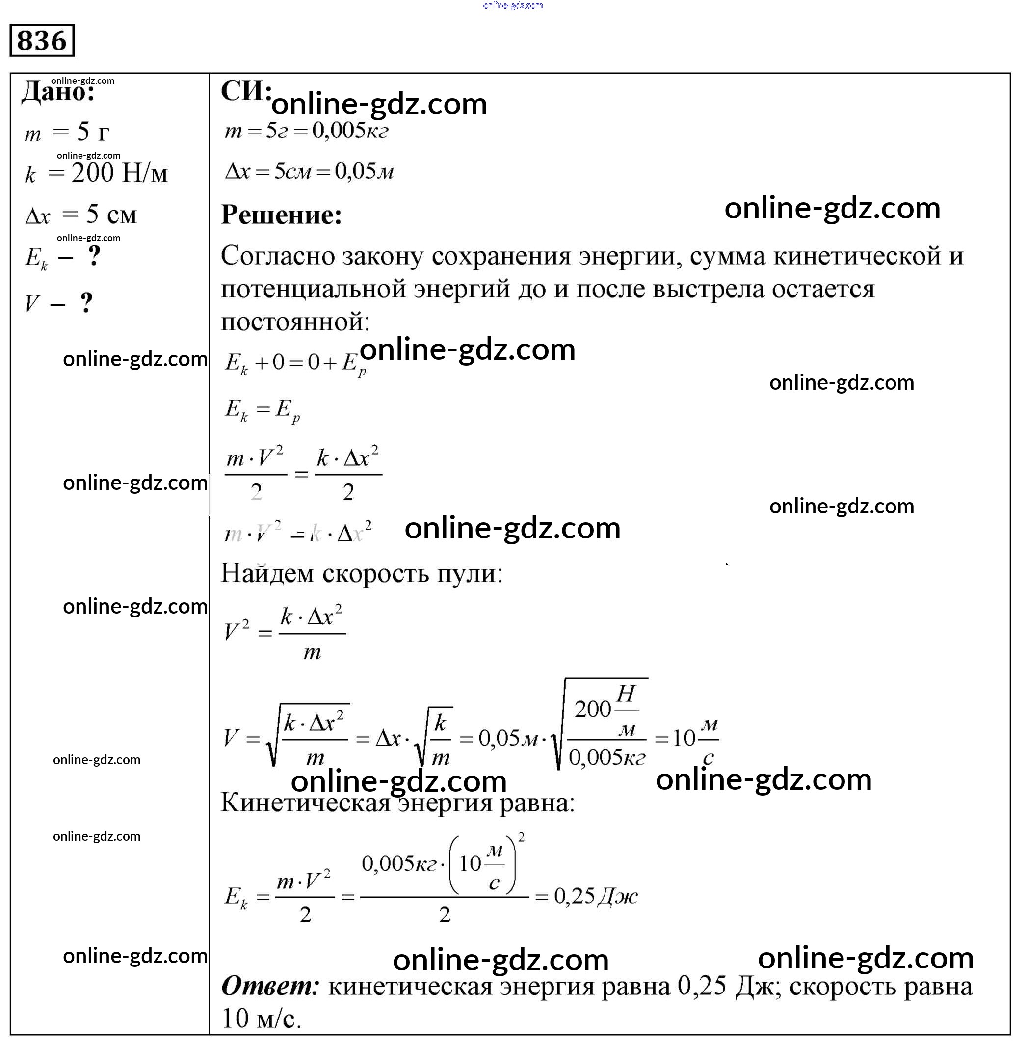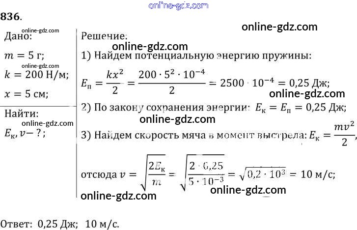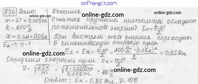 Готовые домашние задания по Физике за 7, 8, 9 класс Сборник задач Лукашик, Иванова 2011 - Задания 836