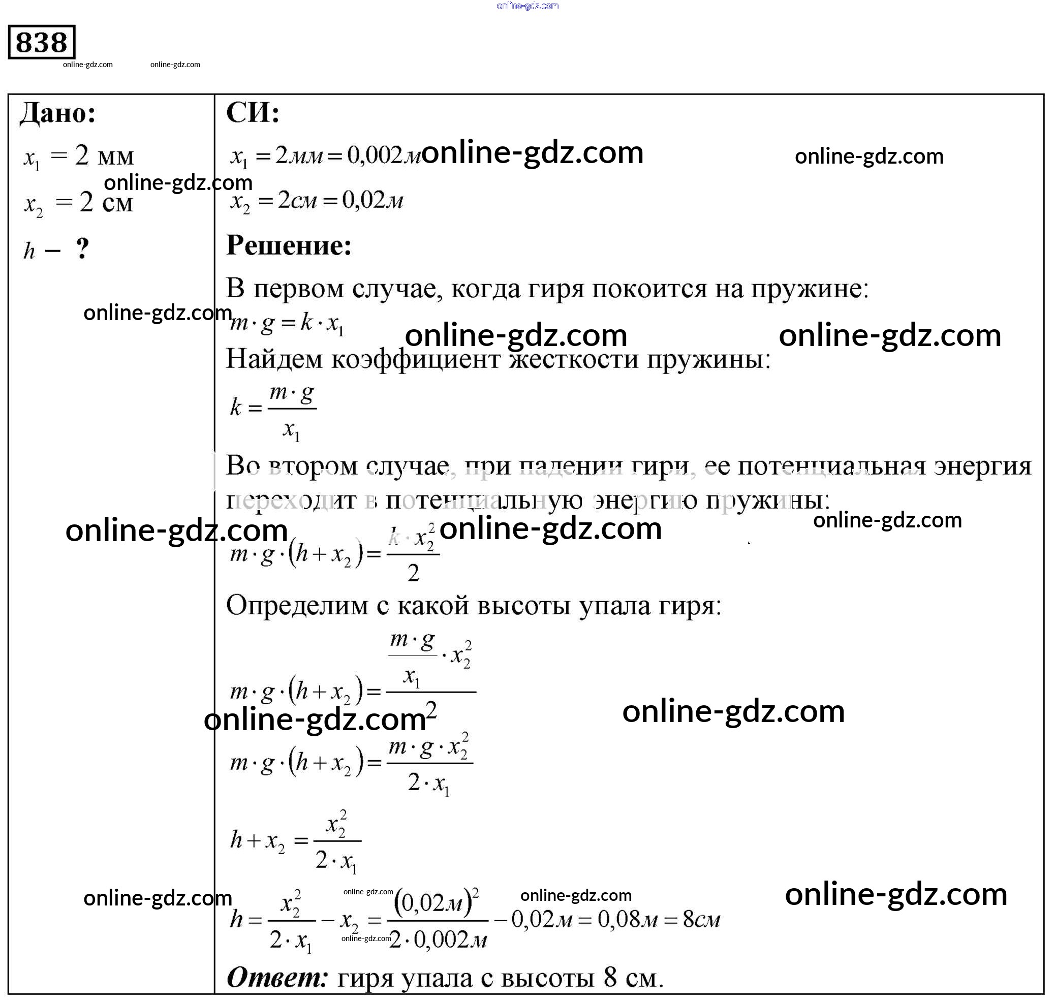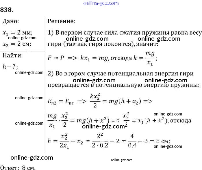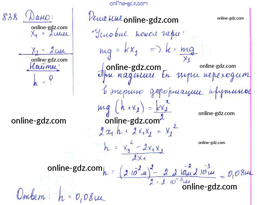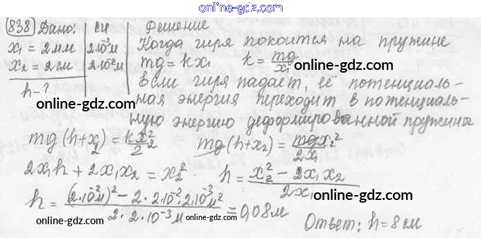 Готовые домашние задания по Физике за 7, 8, 9 класс Сборник задач Лукашик, Иванова 2011 - Задания 838