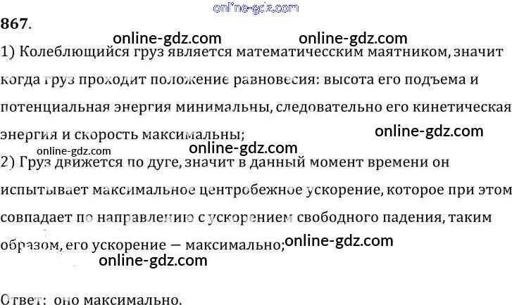Готовые домашние задания по Физике за 7, 8, 9 класс Сборник задач Лукашик, Иванова 2011 - Задания 867