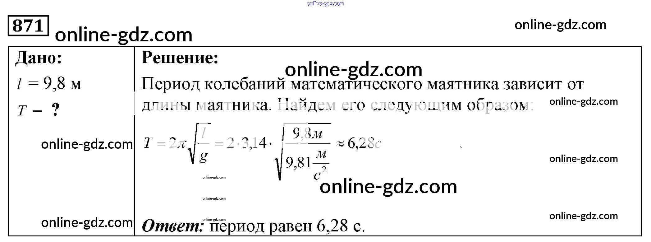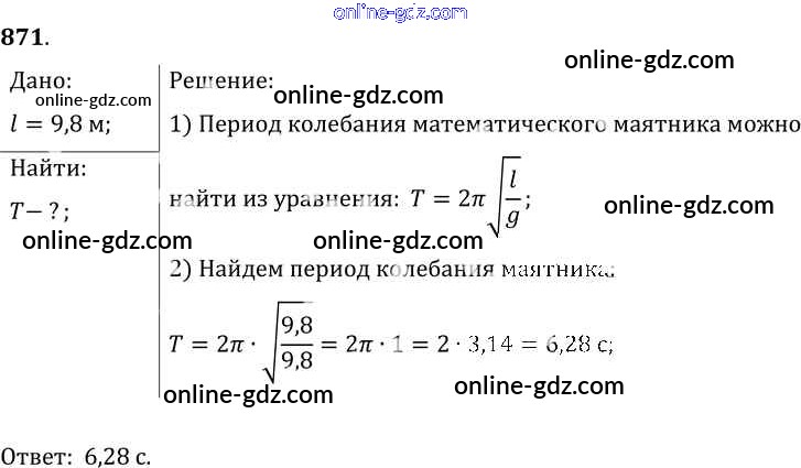 Готовые домашние задания по Физике за 7, 8, 9 класс Сборник задач Лукашик, Иванова 2011 - Задания 871