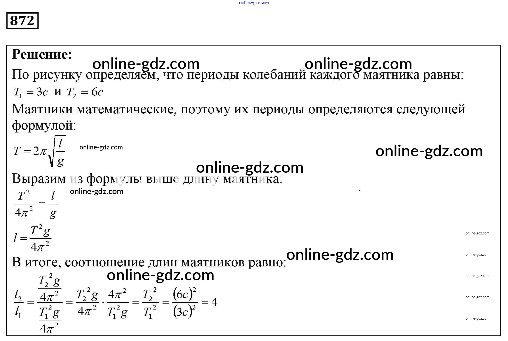 Готовые домашние задания по Физике за 7, 8, 9 класс Сборник задач Лукашик, Иванова 2011 - Задания 872