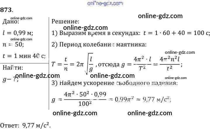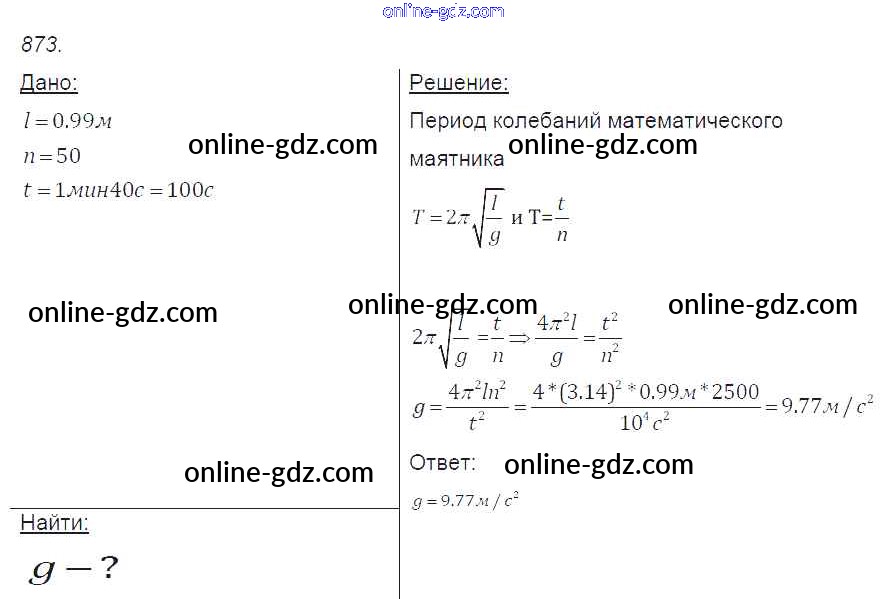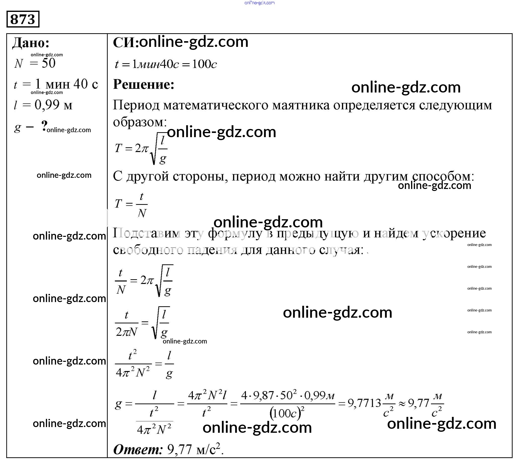 Готовые домашние задания по Физике за 7, 8, 9 класс Сборник задач Лукашик, Иванова 2011 - Задания 873