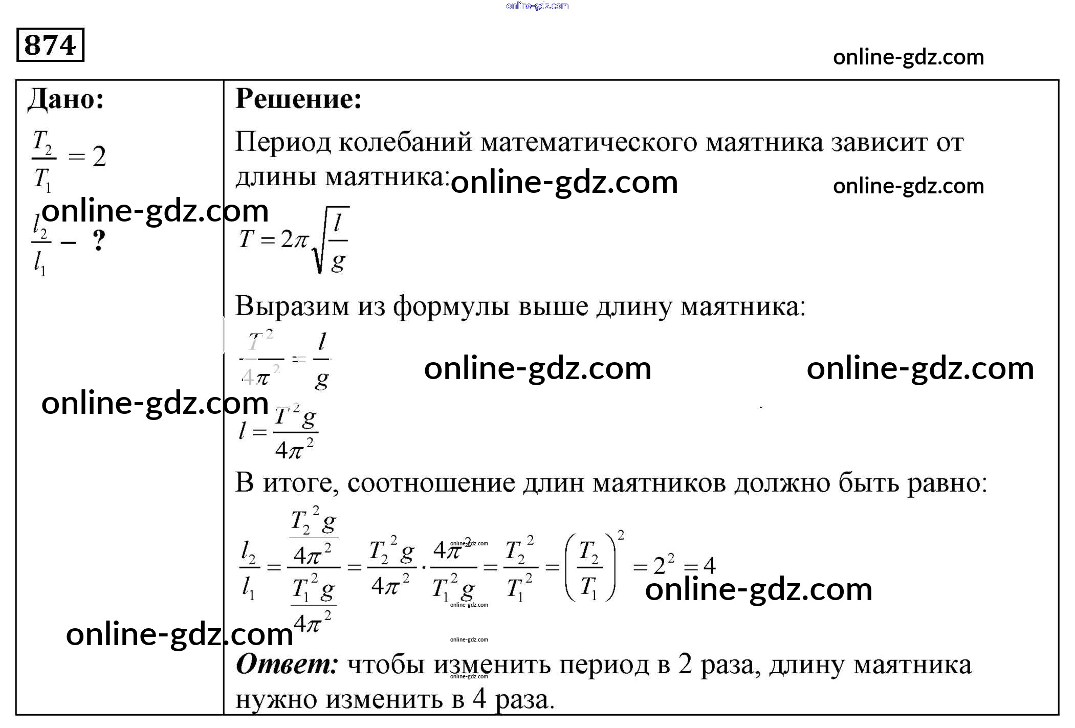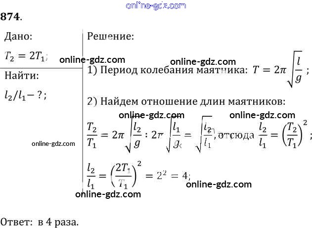 Готовые домашние задания по Физике за 7, 8, 9 класс Сборник задач Лукашик, Иванова 2011 - Задания 874