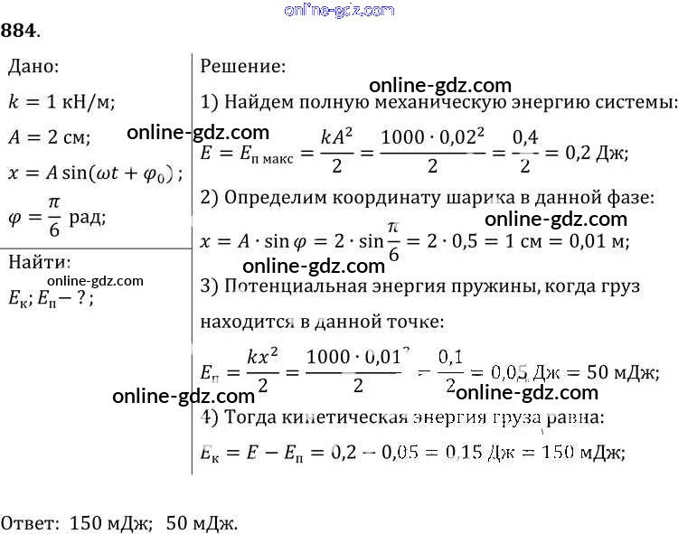 Готовые домашние задания по Физике за 7, 8, 9 класс Сборник задач Лукашик, Иванова 2011 - Задания 884