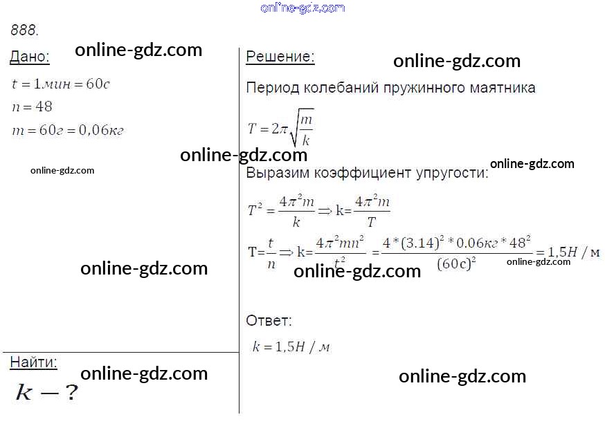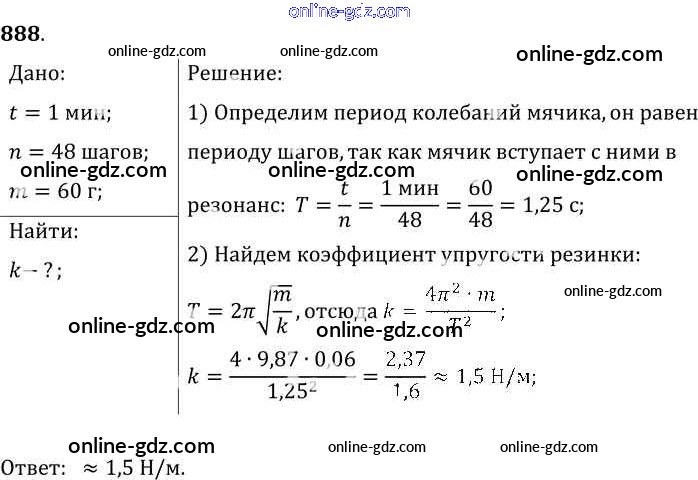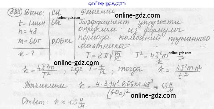 Готовые домашние задания по Физике за 7, 8, 9 класс Сборник задач Лукашик, Иванова 2011 - Задания 888